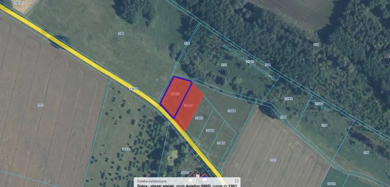 Do działki dojedziesz wklejając w Google Maps 53.552105, 15.232914