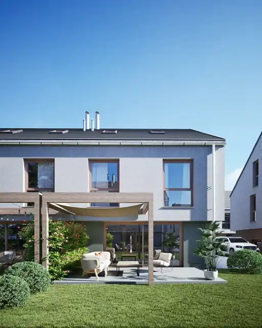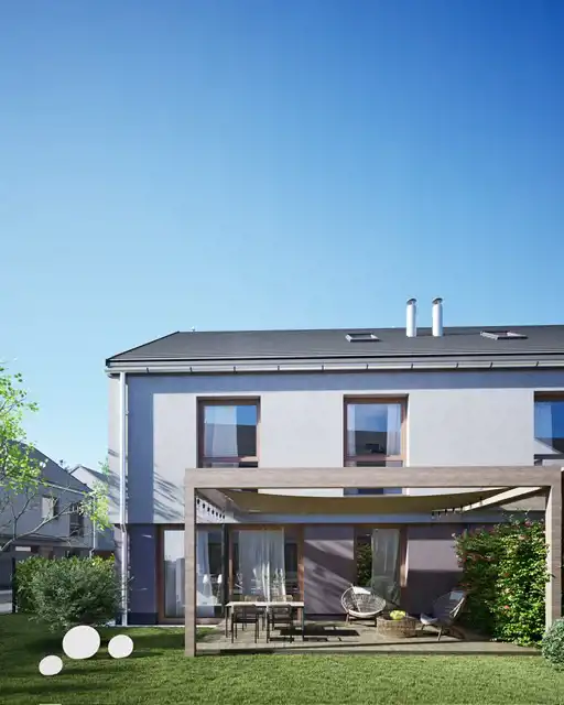 Domy charakteryzują się nowoczesną architekturą, wysokim standardem wykonania oraz przemyślanym układem pomieszczeń, zapewniającym komfortowe warunki do życia dla całej rodziny.