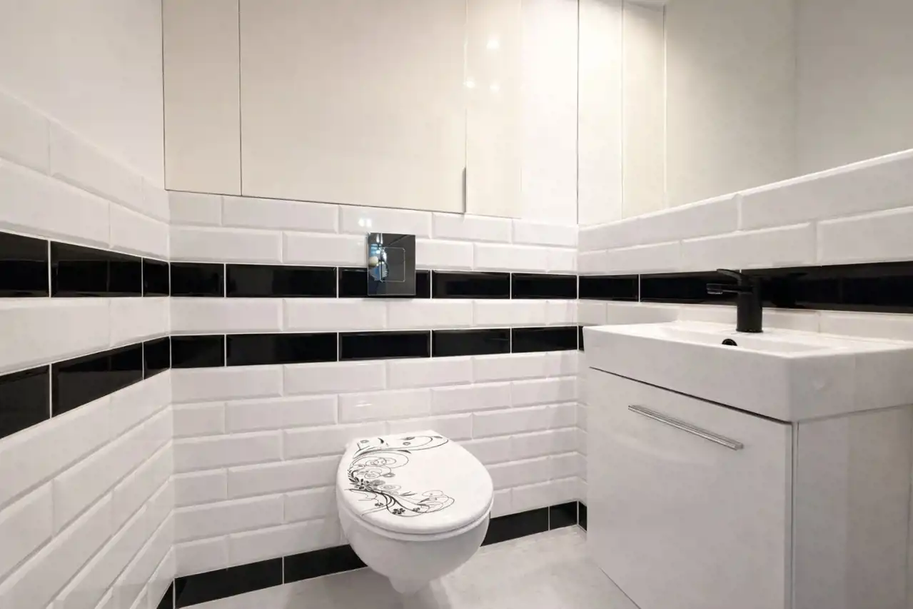 Kuchnia wykonana w zabudowie na wymiar, wyposażona w płytę indukcyjną, piekarnik elektryczny, okap, zmywarkę oraz lodówko-zamrażarkę z bezpośrednim podłączeniem do wody i kostkarką. Dodatkowo zamontowany filtr wody.