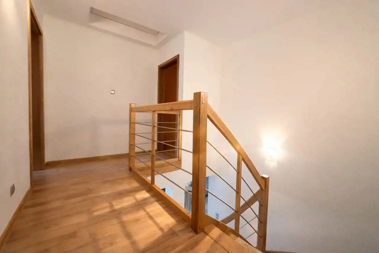 Na piętrze znajdują się trzy ustawne sypialnie oraz łazienka z prysznicem i WC. Na etapie budowy przewidziano możliwość montażu wanny – wykonane przyłącze znajduje się pod płytkami, co umożliwia łatwą zmianę aranżacji.