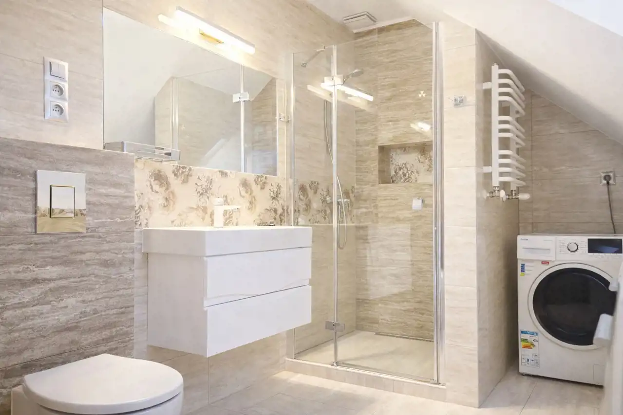 W bryle budynku znajduje się garaż. W jego tylnej części wydzielono pomieszczenie techniczne z piecem gazowym marki De Dietrich oraz zasobnikiem ciepłej wody użytkowej o pojemności 150 l.