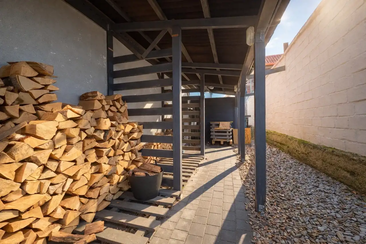 Salon jest przestronny, ustawny i doskonale doświetlony. Znajduje się w nim kominek z wkładem akumulacyjnym, który efektywnie oddaje ciepło jeszcze długo po wygaszeniu ognia, oraz jednostka klimatyzacji. Z salonu wyjście prowadzi na taras o powierzchni 21 m² oraz do ogrodu. Dużym atutem jest zadaszona pergola z elektrycznymi roletami, tworząca komfortową strefę wypoczynkową niezależnie od pogody.