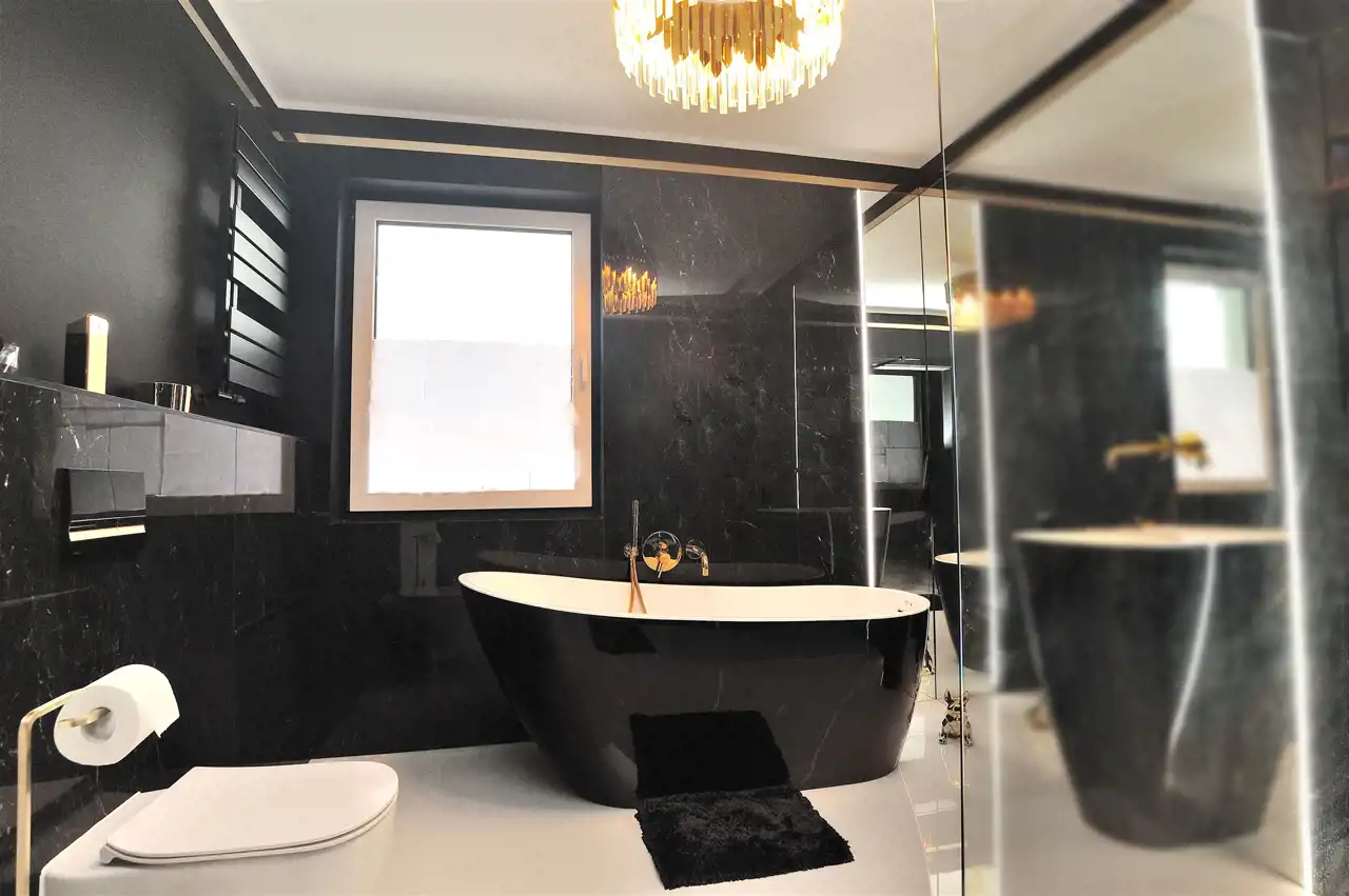 Dodatkowym atutem jest ogrzewanie podłogowe, zapewniające komfort ciepła w chłodniejsze dni.
