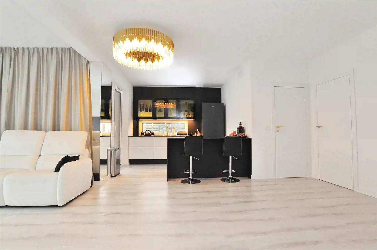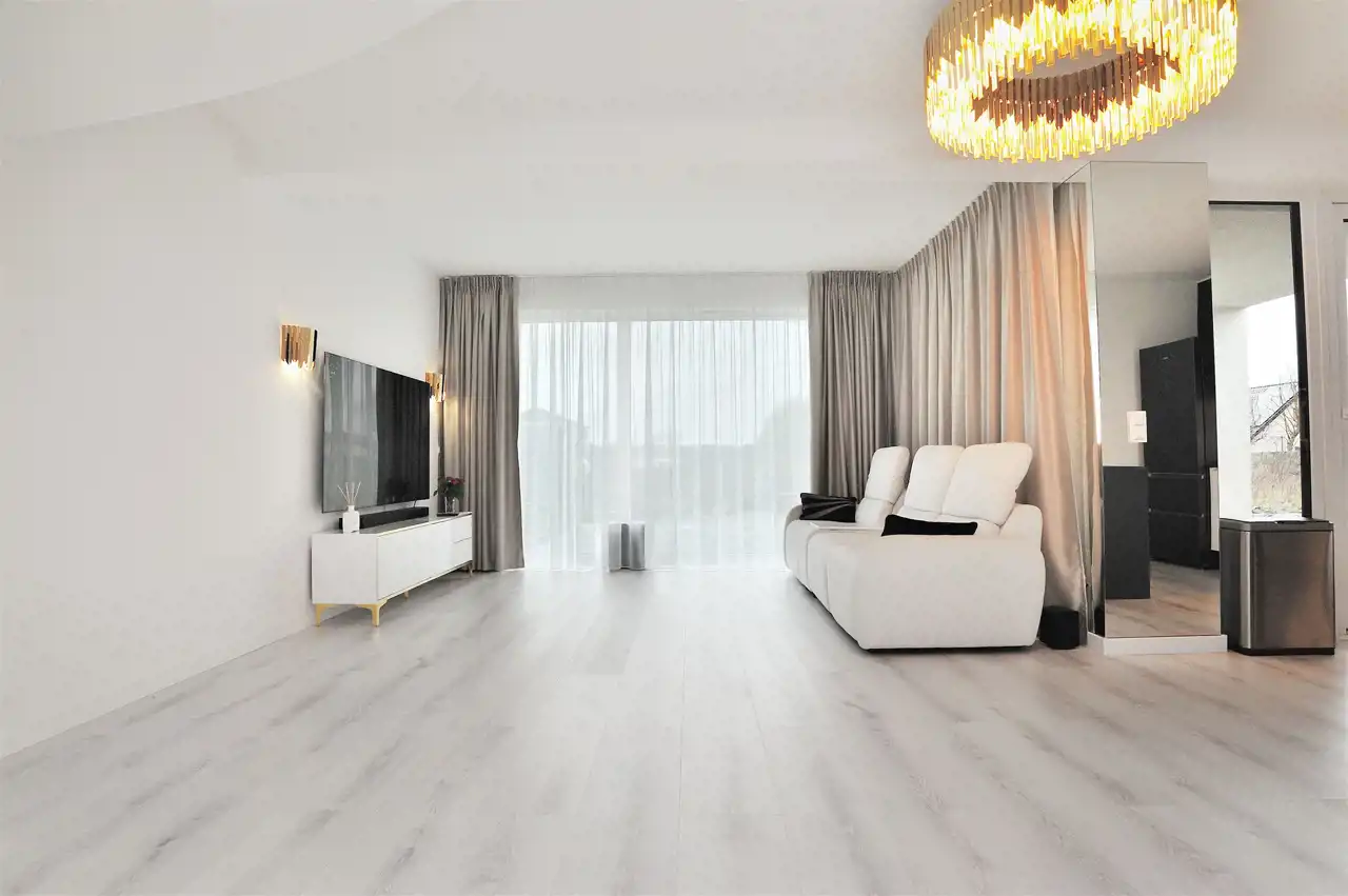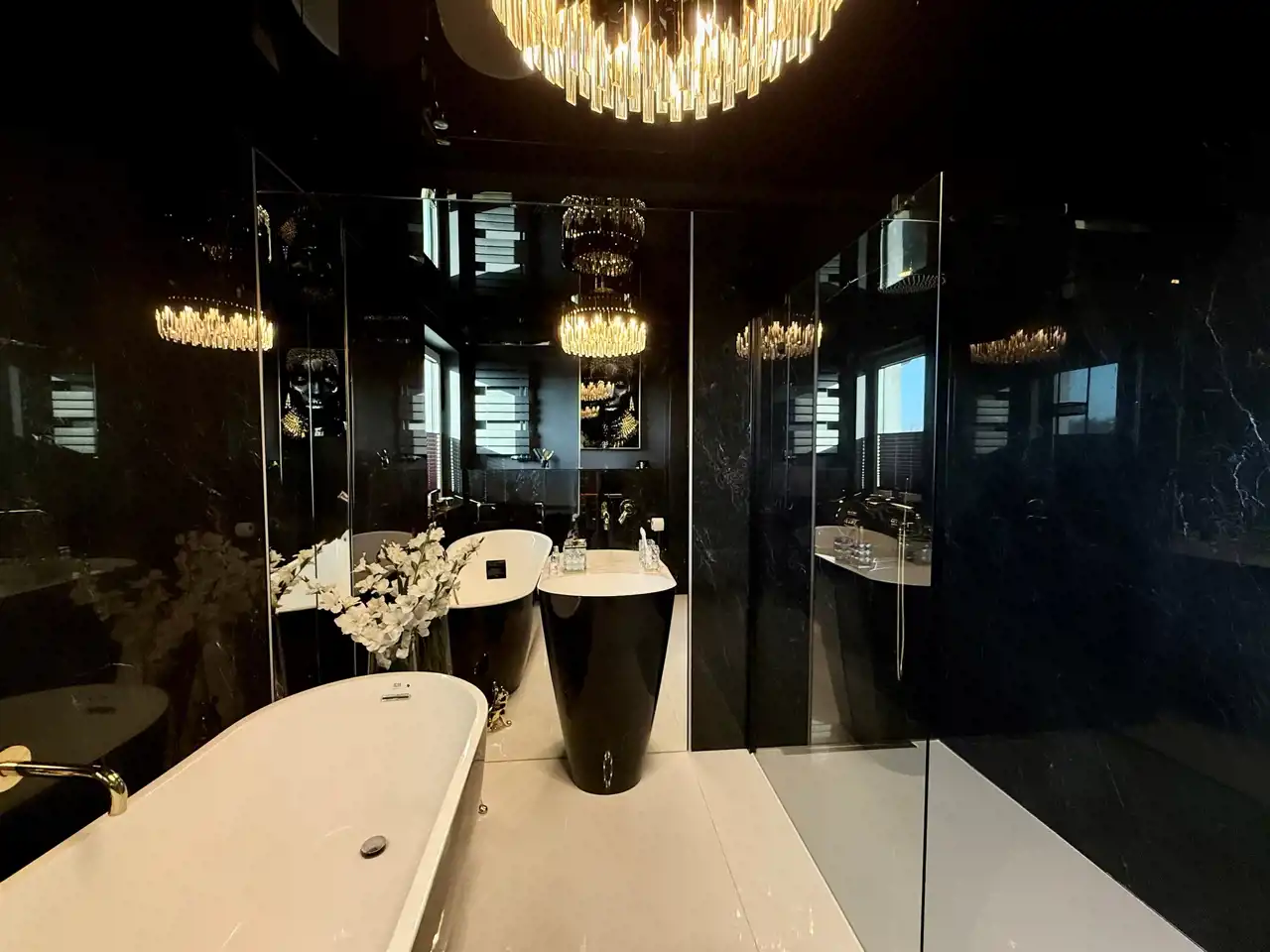 Dodatkowym atutem jest ogrzewanie podłogowe, zapewniające komfort ciepła w chłodniejsze dni.