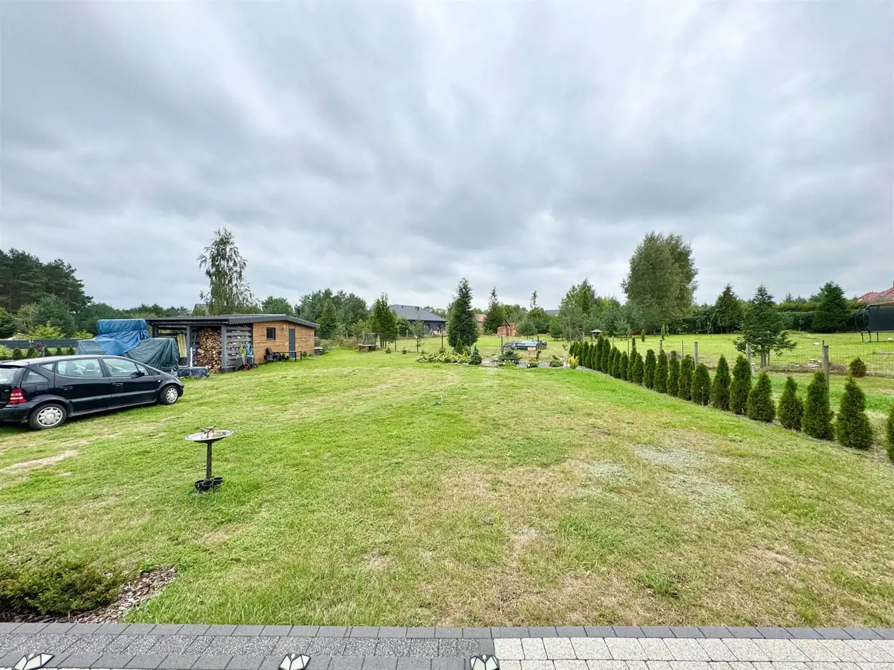Tarasy i podjazdy wykonane są z polbruku, Ogród częściowo zagospodarowany z domkiem gospodarczym o pow. około 35 m2 .Ogrodzenie frontowe aluminiowe z bramą otwieraną na pilot.