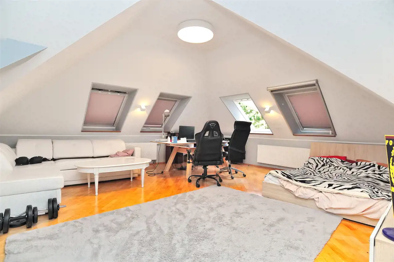 Dom znajduje się w spokojnej okolicy, z dala od miejskiego zgiełku, co zapewnia ciszę i spokój. Jednakże, jest to także dogodne miejsce dla osób pracujących w mieście, ponieważ dojazd do centrum miasta zajmuje zaledwie kilka minut.