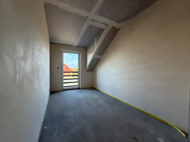 Dodatkowa przestrzeń z płytą OSB — możliwość adaptacji na pokój rekreacyjny, biuro, garderobę lub magazyn.
