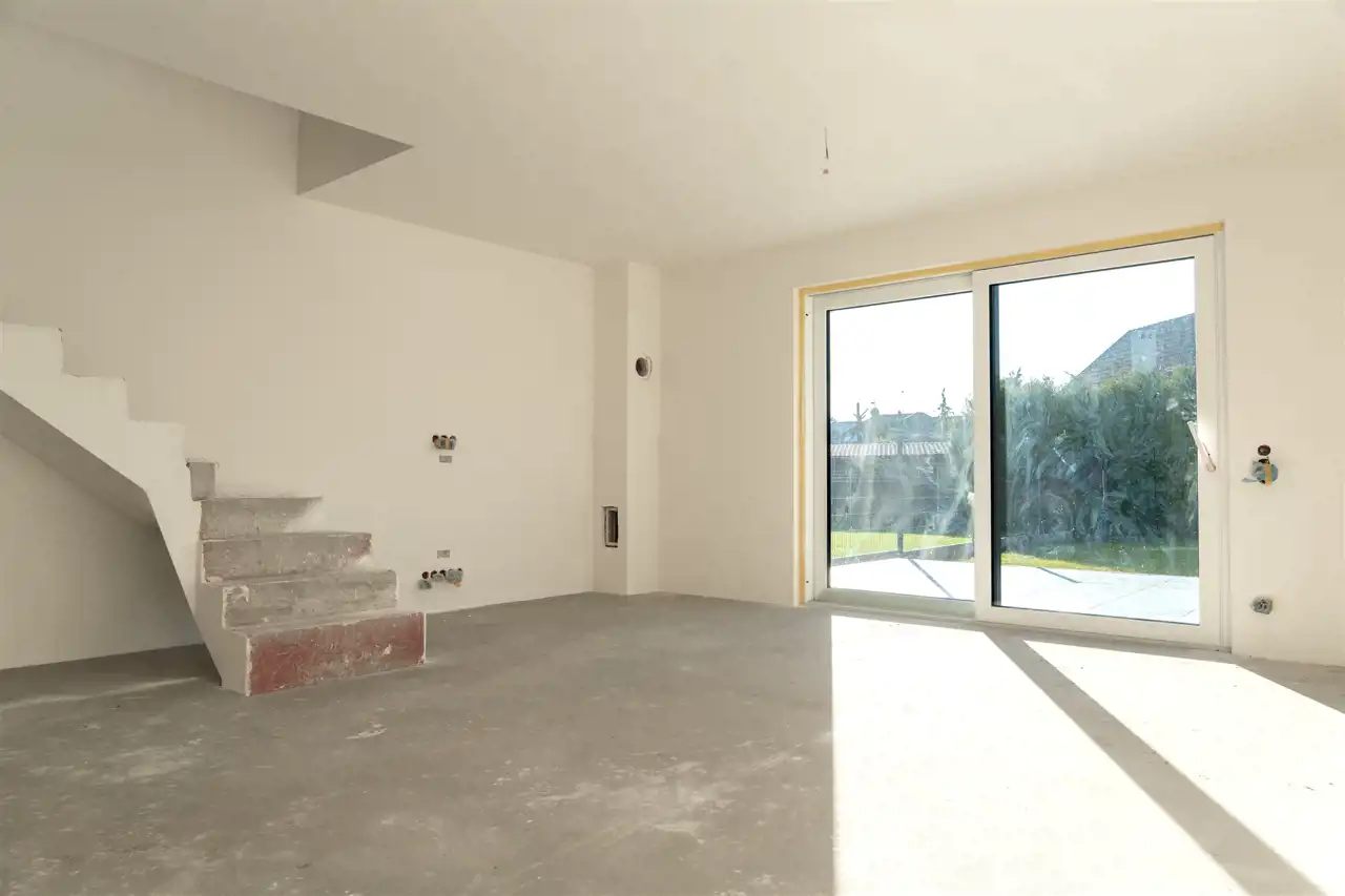 Parter : salon z aneksem kuchennym oraz wyjściem na taras i ogród od strony południowej, pokój idealny na biuro lub pokój gościnny, wiatrołap, łazienka oraz pomieszczenie gospodarcze.