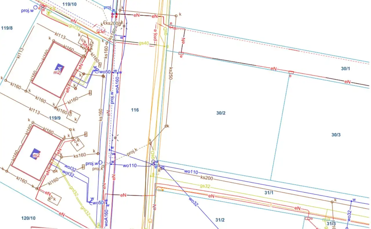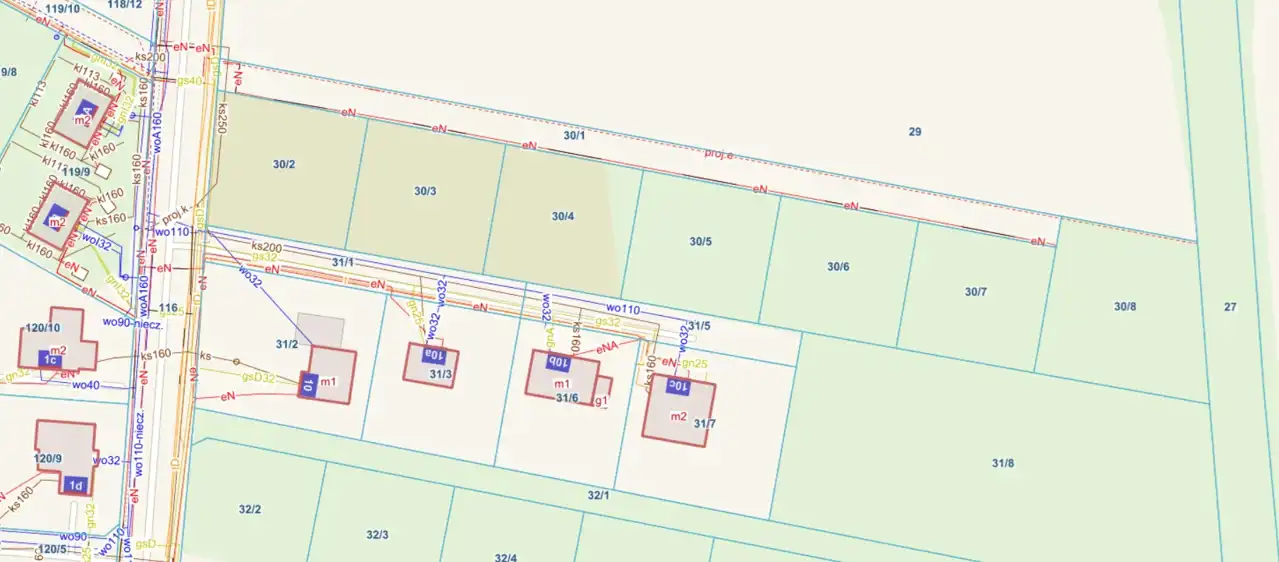 - Media Woda: w ulicy; Kanalizacja: w ulicy; Prąd: w ulicy; Gaz: w ulicy