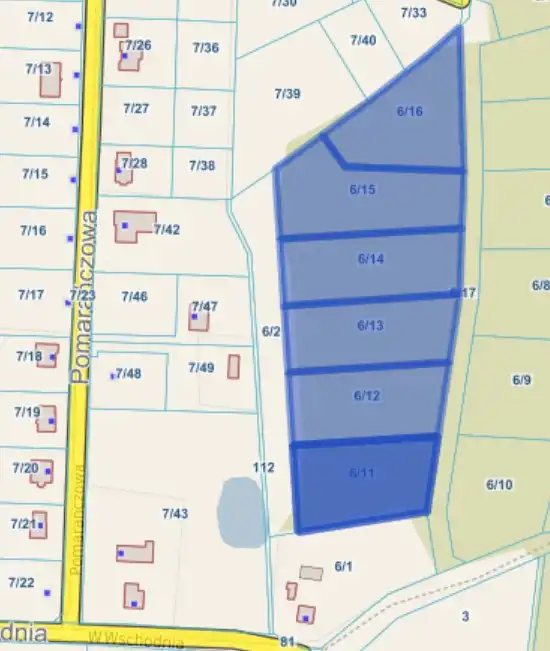 - Powierzchnia działek: od 3021 m² do 3583 m²
