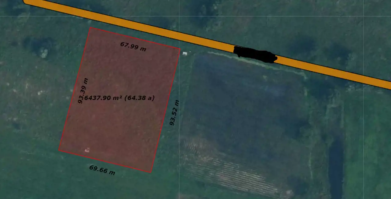 Działka o powierzchni 6.390m2 - kształt prostokąta.