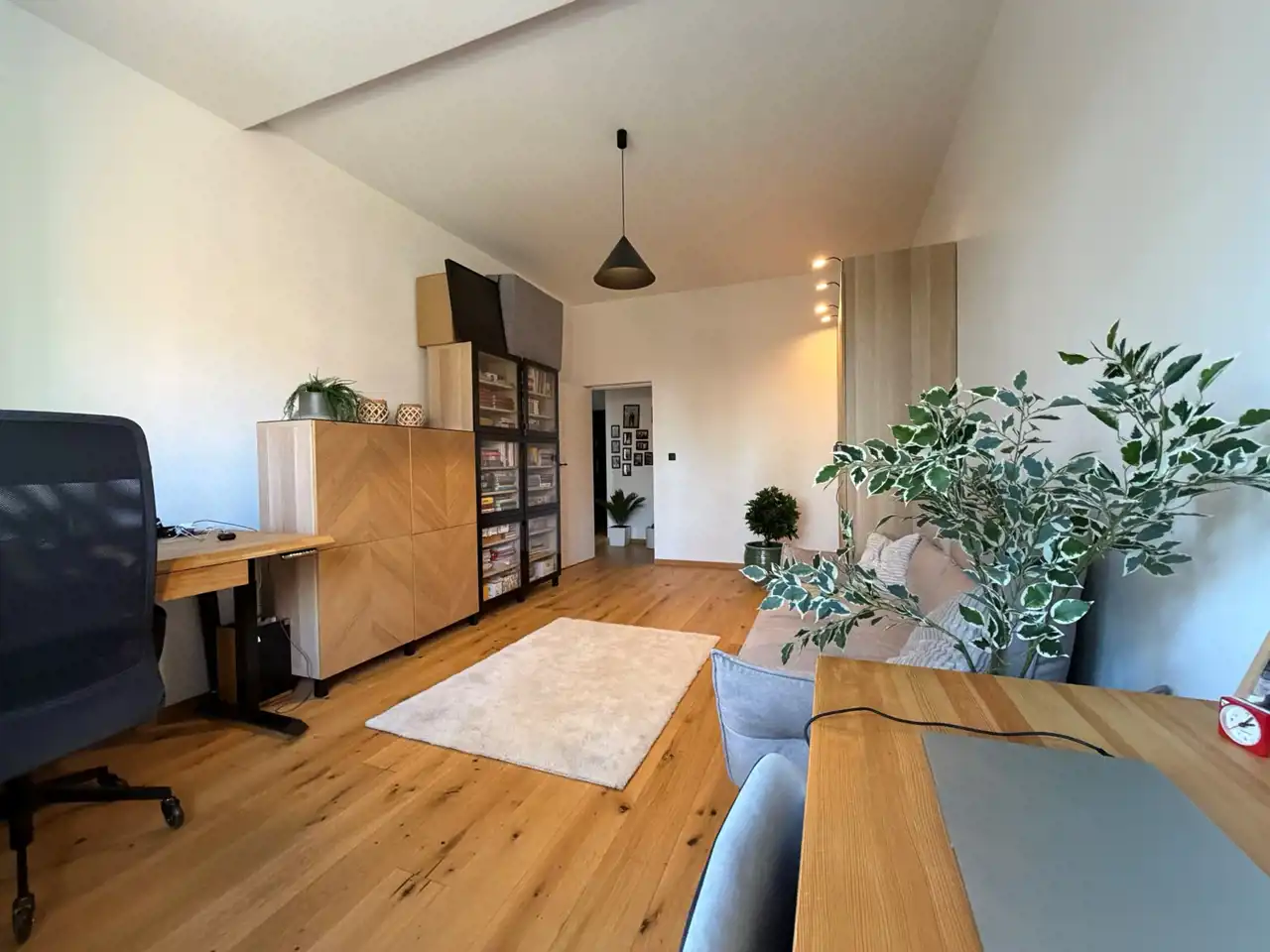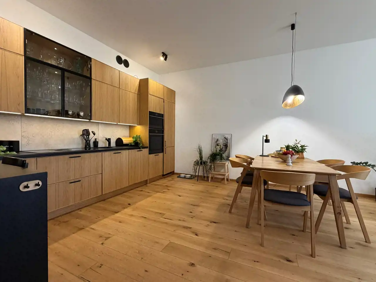 Wnętrze zaprojektowane zostało z dbałością o estetykę, funkcjonalność i trwałość. Zastosowano naturalne materiały, wysokiej klasy wyposażenie oraz ponadstandardową wysokość pomieszczeń – aż do 3 metrów, co tworzy wyjątkowy, loftowy klimat.