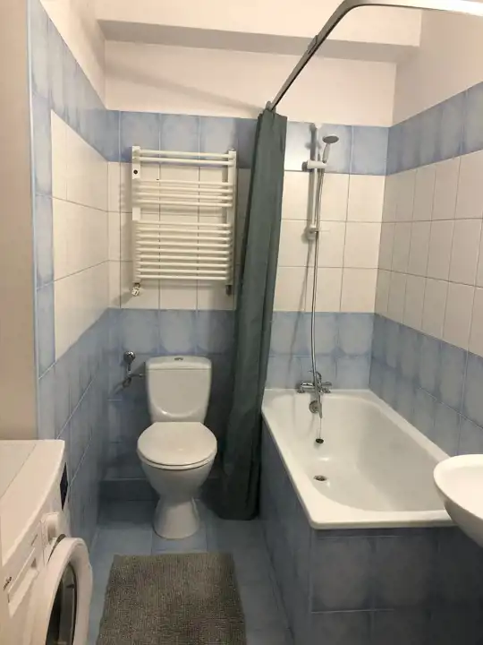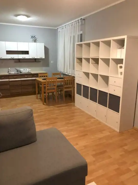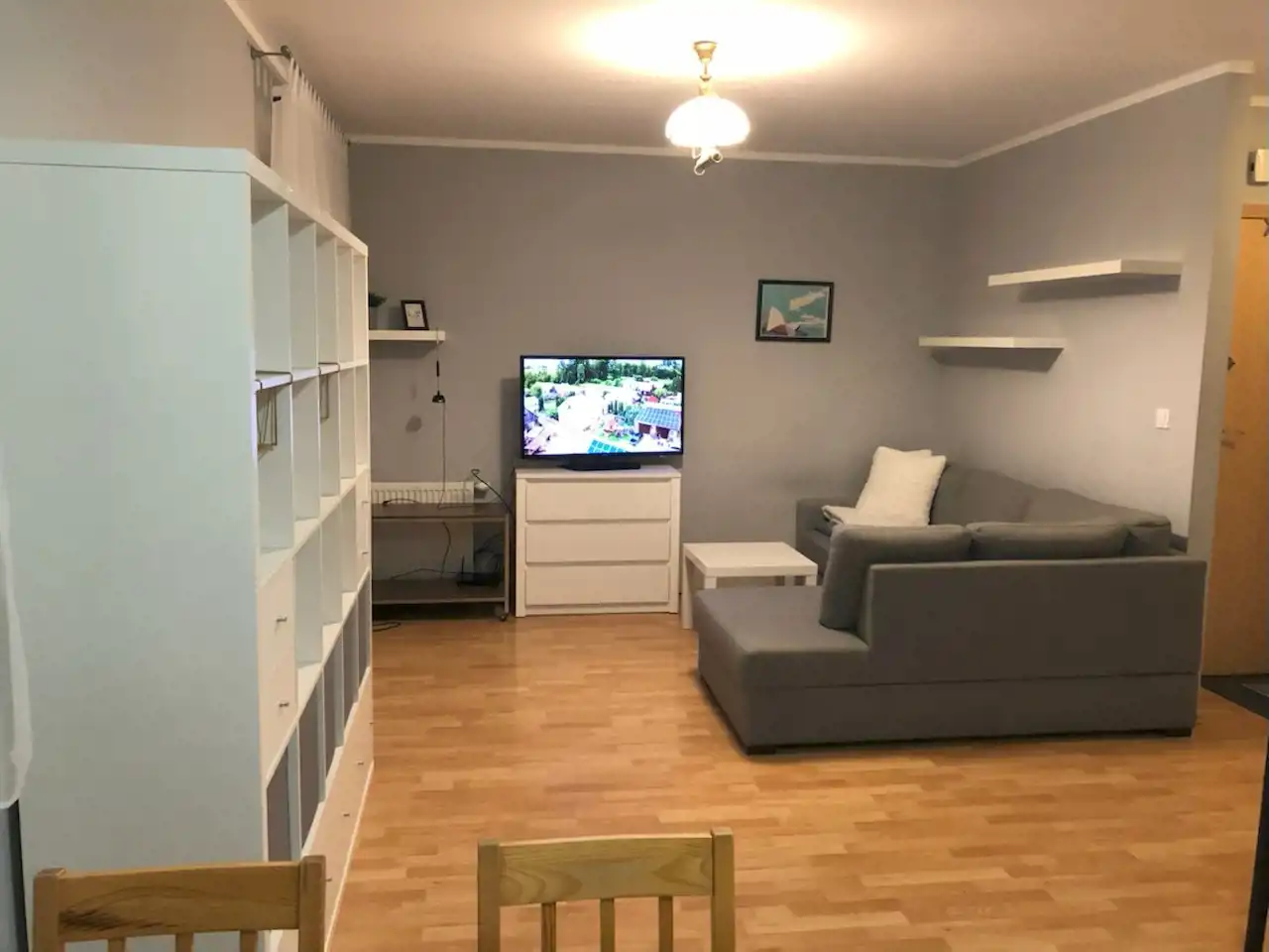 Mieszkanie ma 30m2 powierzchni w skład której wchodzi pokój z aneksem kuchennym, łazienka z wanną i komunikacja.