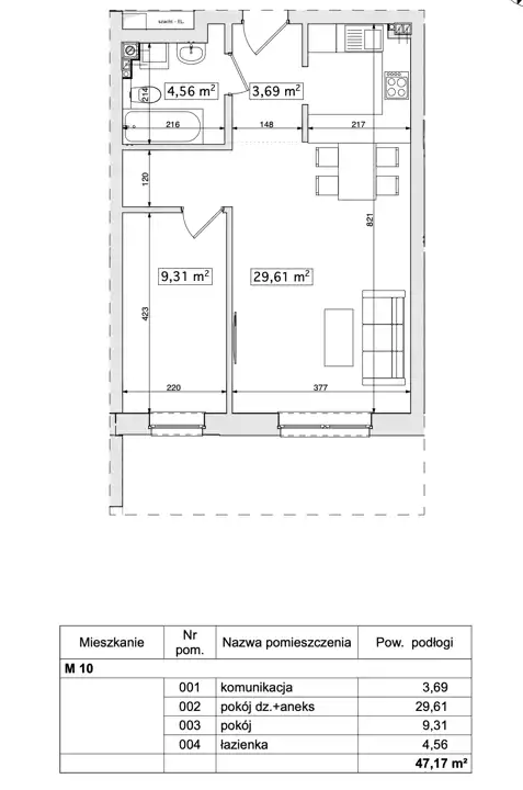 - Charakterystyka mieszkania 47.17 m2, 2 pokoje