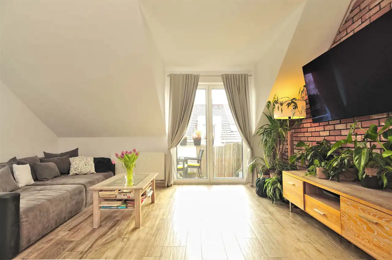 Mieszkanie ładnie doświetlone, z dopełnieniem przedłużenia przestrzeni wypoczynkowej niewielkim balkonem.