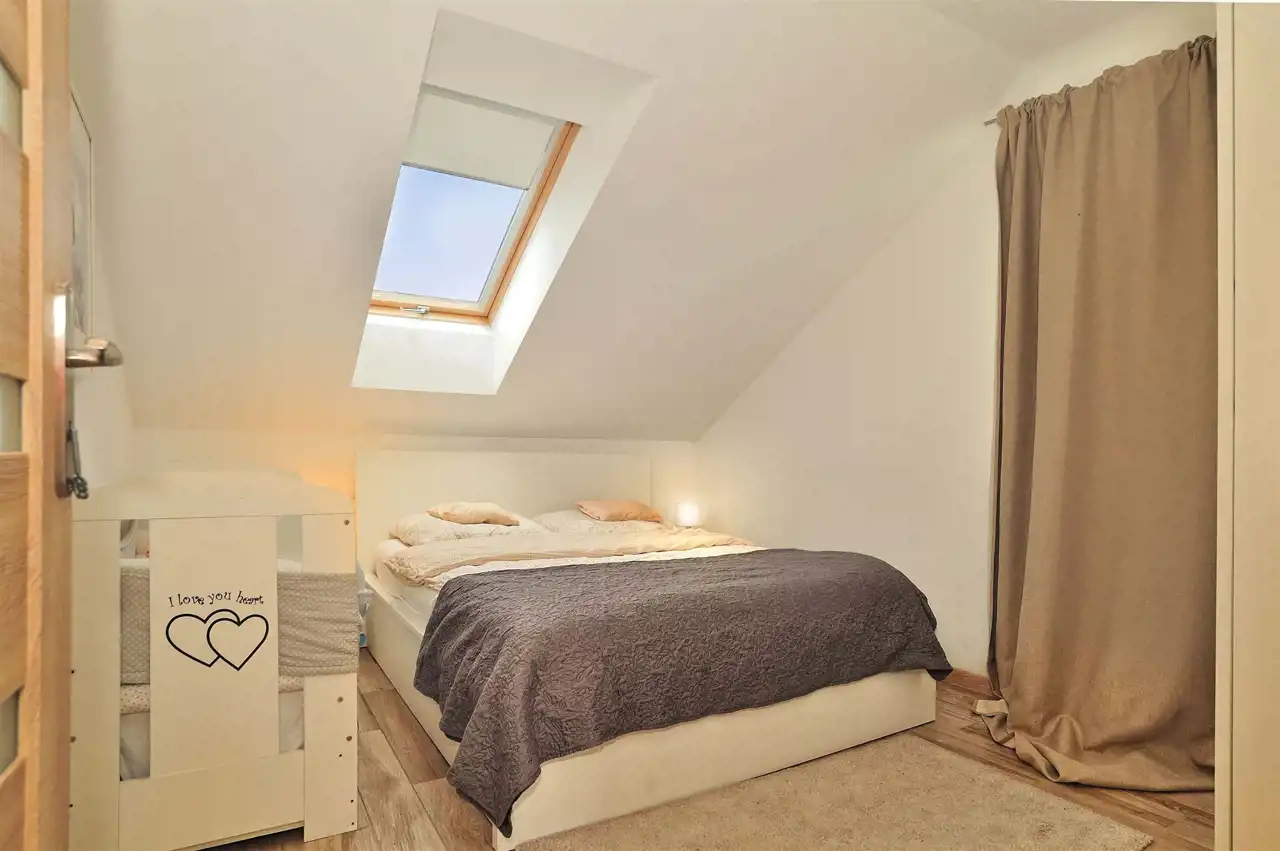Dwie sypialnie utrzymane w jasnej kolorystyce, widne.