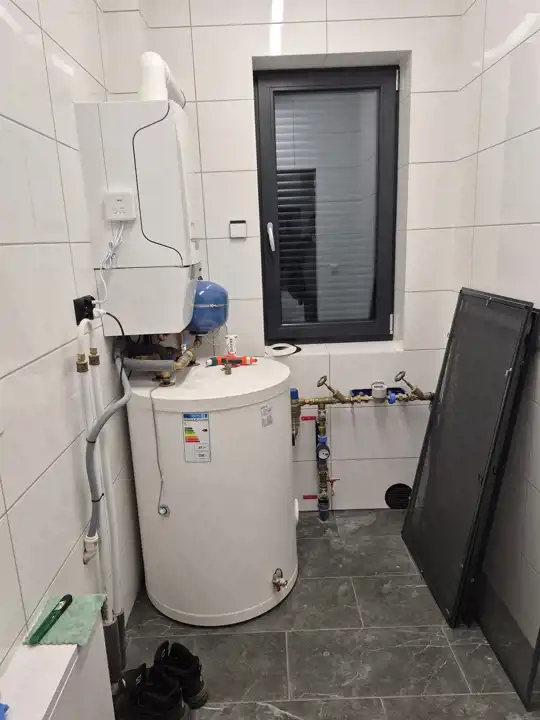 - Ogrzewanie podłogowe z pieca gazowego dwufuncyjnego , wkopana butla na propan-butan