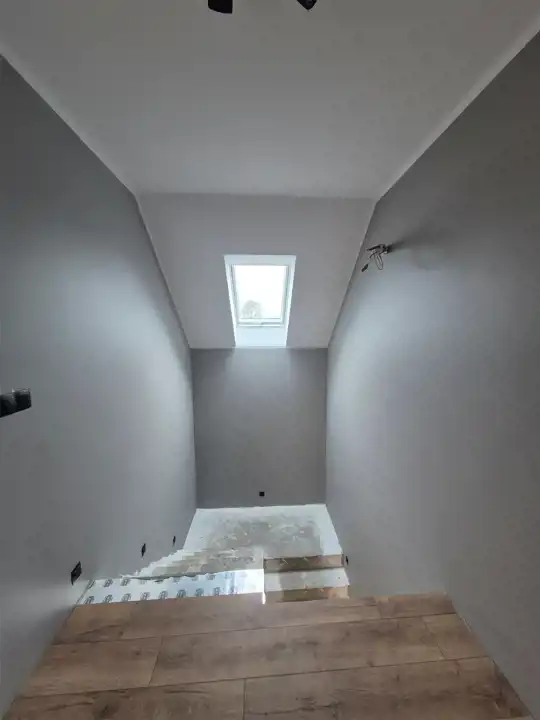 - I piętro: 3 sypialnie, oraz duża łazienka z kabiną prysznicową, komunikacja, 2 garderoby,