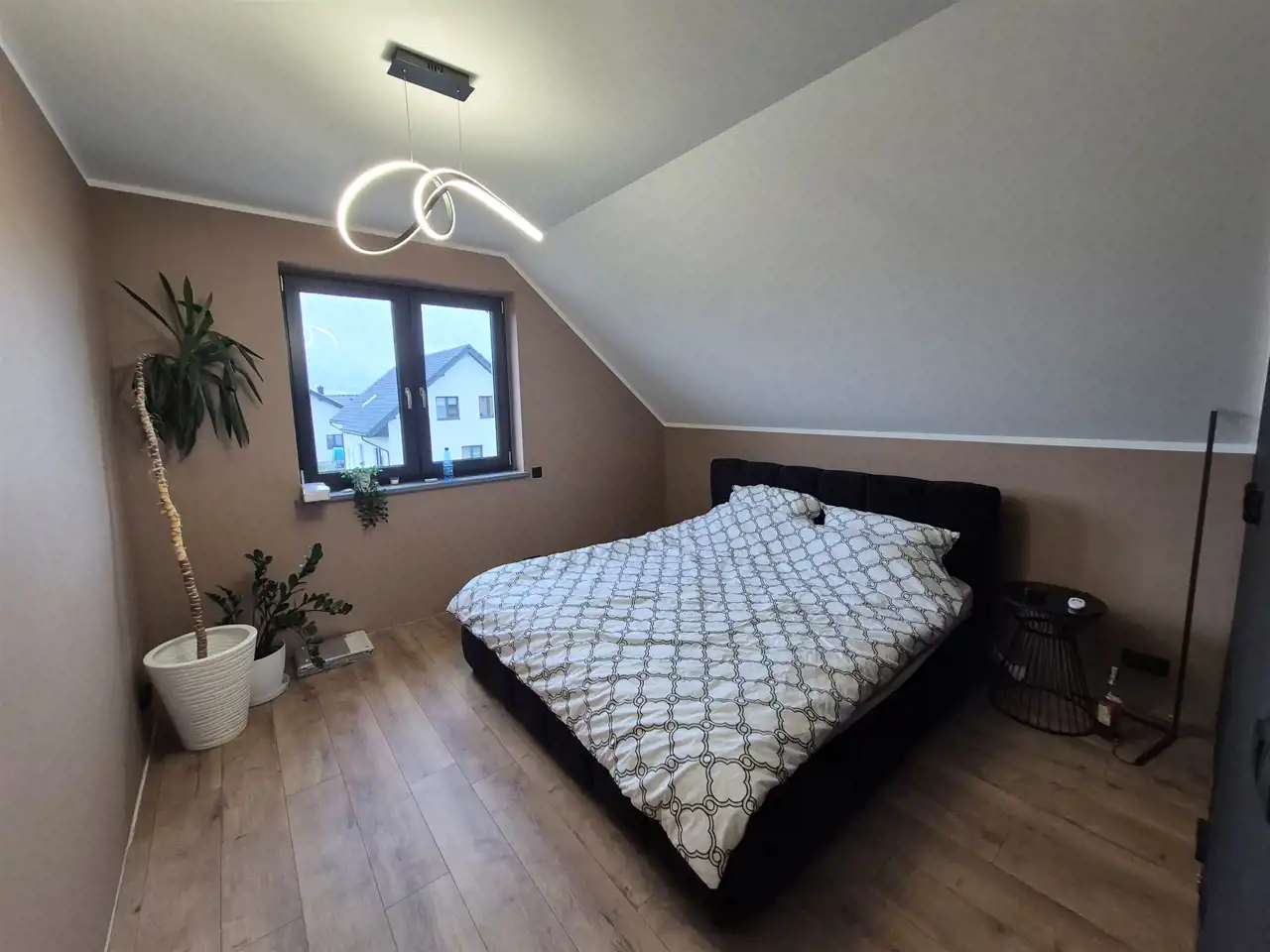 - Parter: przestronny salon z aneksem kuchennym 35m2, pokój gościnny, toaleta, pomieszczenie gospodarcze (z miejscem na pralkę i suszarkę),