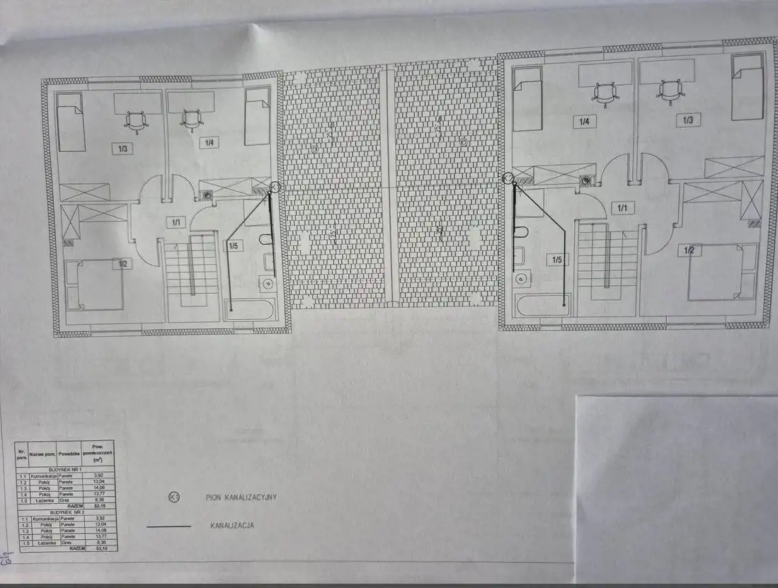 Piętro – 53 m²: - Komunikacja – 4 m² - Pokój – 13 m² - Pokój – 14 m² - Pokój – 14 m² - Łazienka – 8 m²