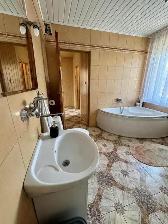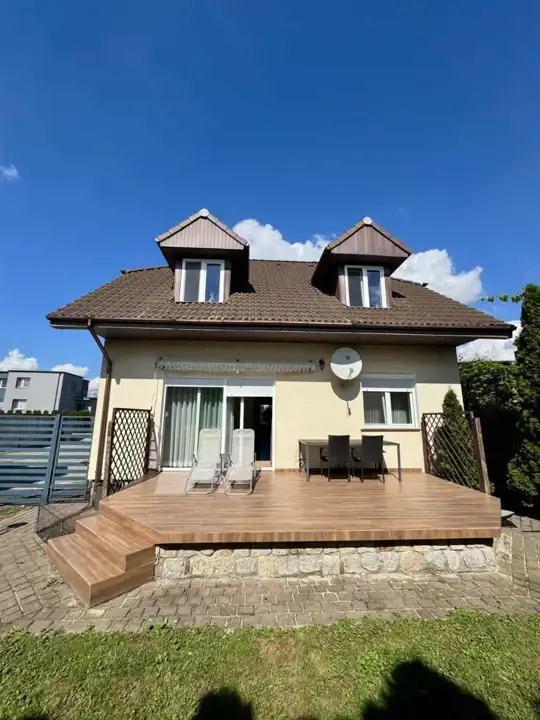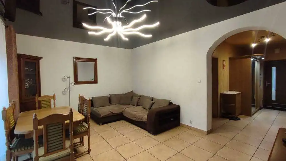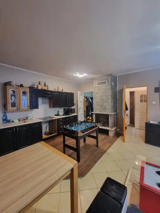 Dom główny, wybudowany w 2003 roku, ma powierzchnię użytkową ok 130m². Budynek jest ocieplony, zadbany i gotowy do wprowadzenia. Ogrzewanie realizowane jest za pomocą pieca na ekogroszek. W domu znajduje się łazienka z wanną, a zabudowa kuchenna pozostaje w cenie (pozostałe meble do uzgodnienia).