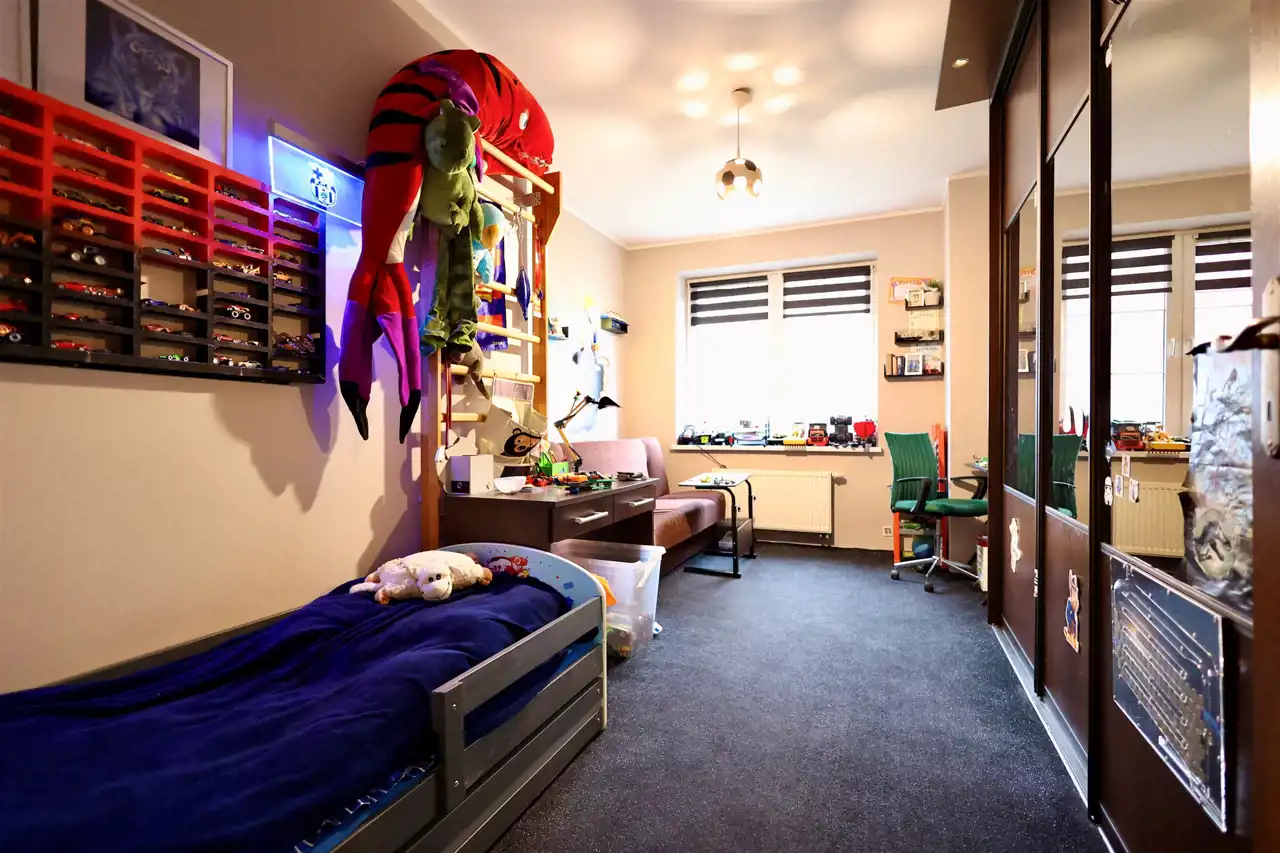 Duży salon połączony z jadalnią i kuchnią zapewnia otwartą i funkcjonalną przestrzeń. Dodatkowo, dom wyposażony jest w 4 łazienki, co gwarantuje komfort dla całej rodziny.