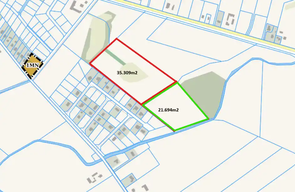 działka o powierzchni 35 309 m² (zaznaczona kolorem czerwonym) – cena: 882 725 zł,