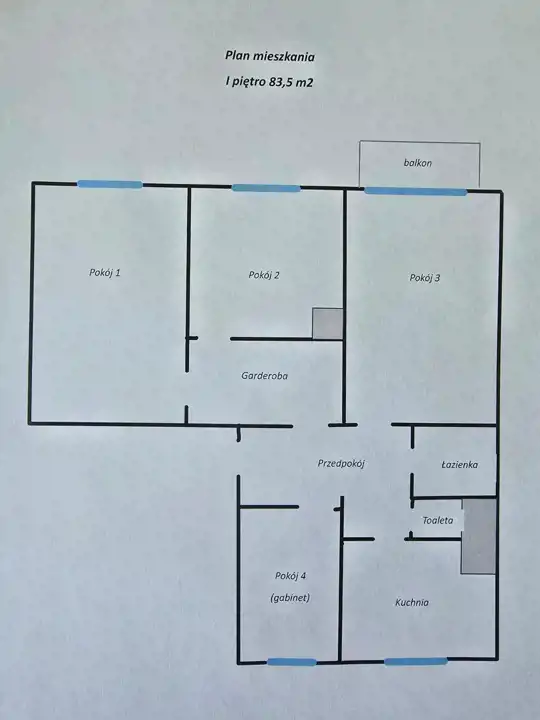 - Charakterystyka mieszkania 83.52 m2, 4 pokoje