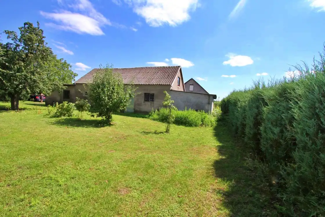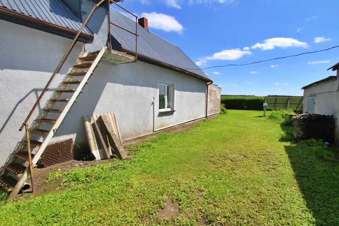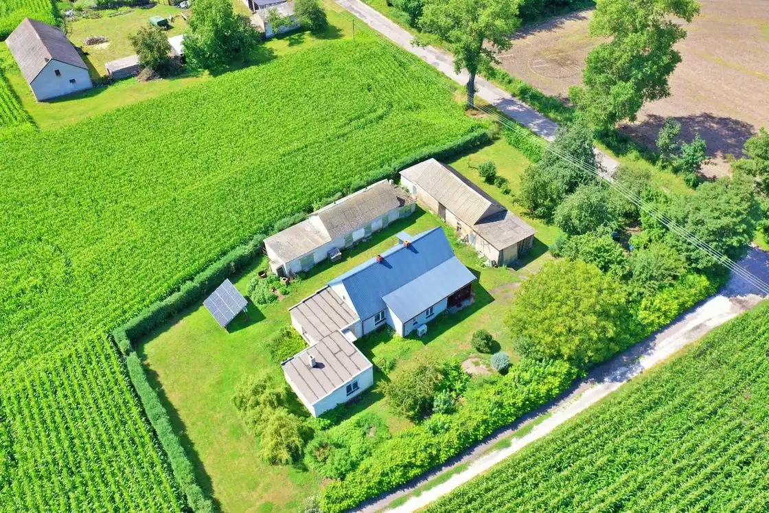 - Zagospodarowanie działki: Działka jest w pełni zagospodarowana, płaska, co daje wiele możliwości aranżacyjnych. Na terenie posesji znajdują się budynki gospodarcze pokryte eternitem,