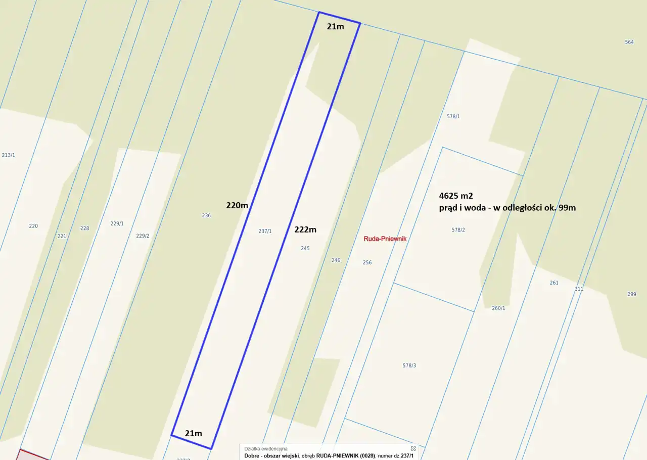 - Media Woda: w ulicy; Kanalizacja: brak; Prąd: w ulicy; Gaz: brak