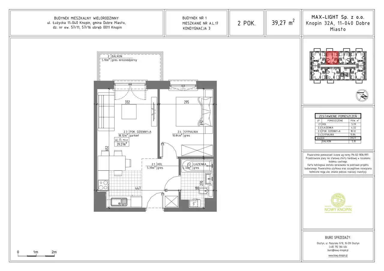 - Charakterystyka mieszkania 39.37 m2, 2 pokoje