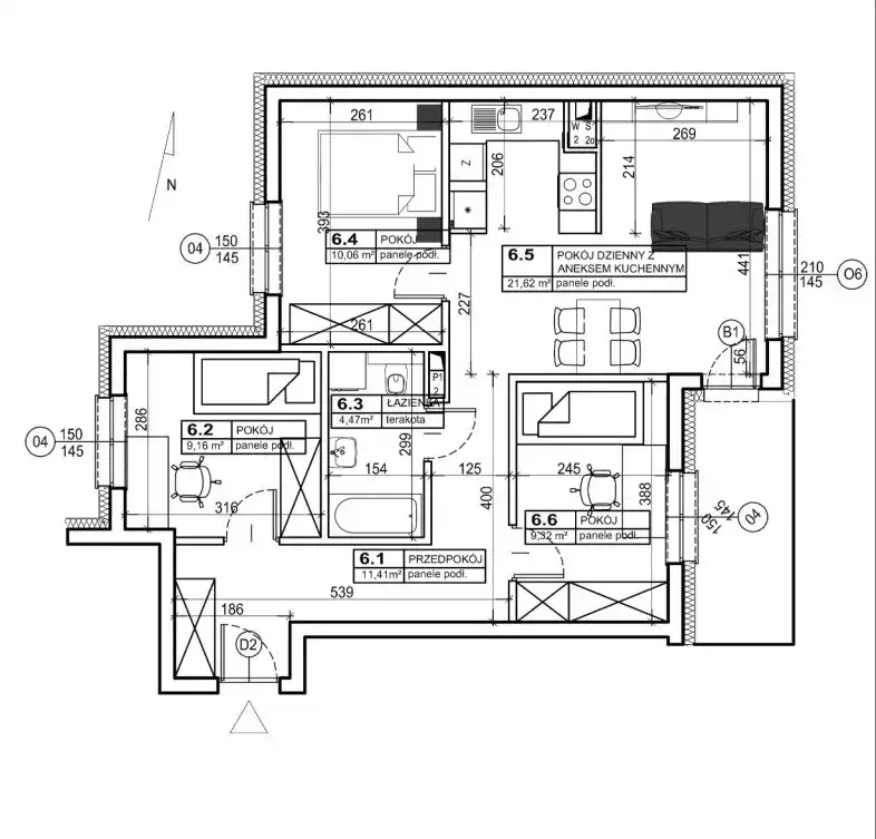 - Charakterystyka mieszkania 66.04 m2, 4 pokoje
