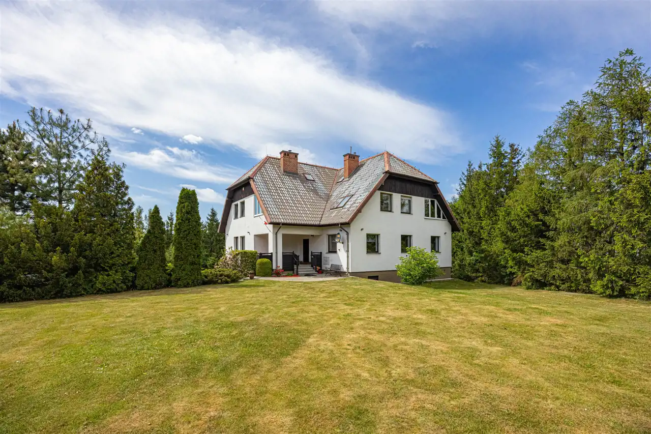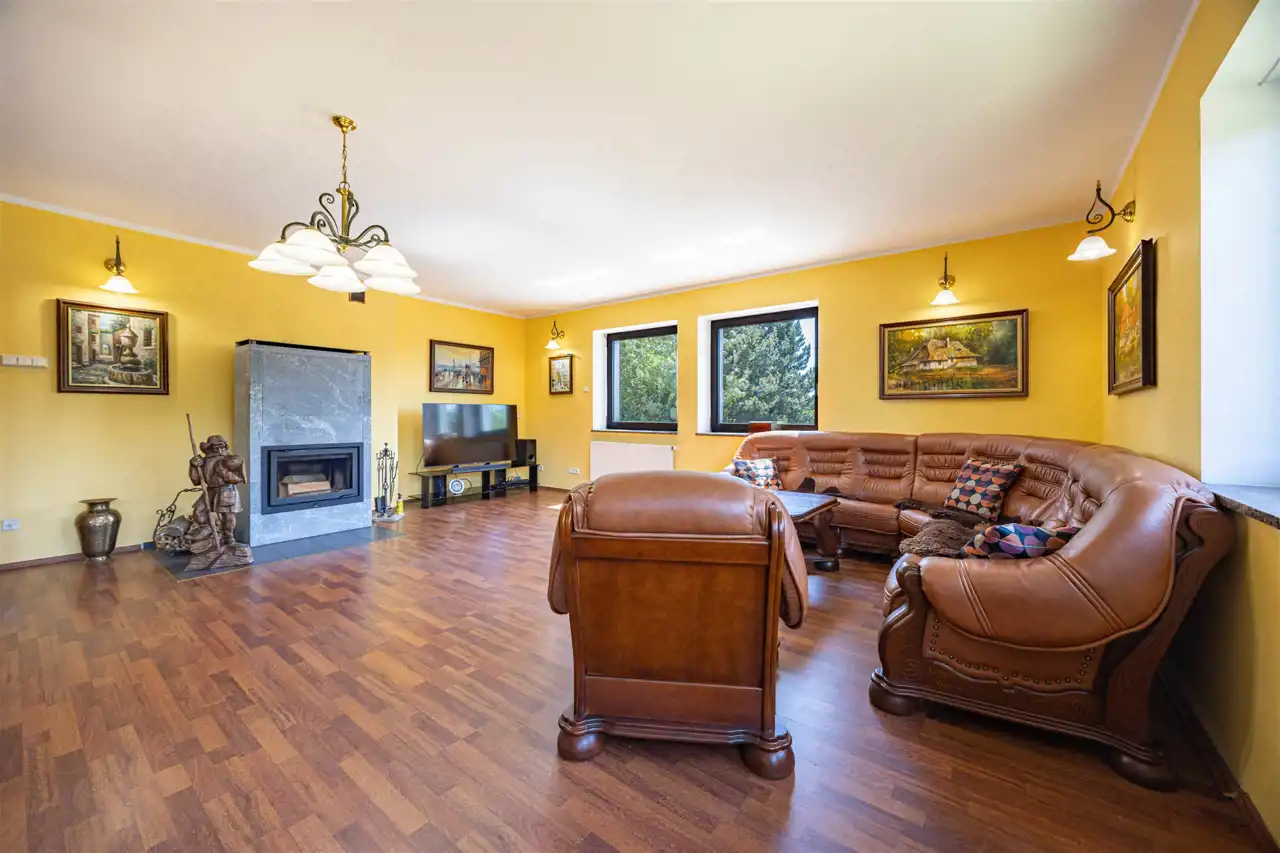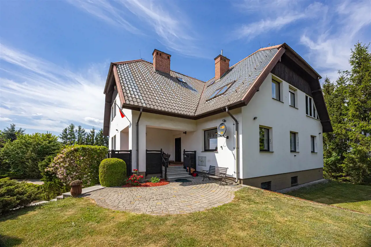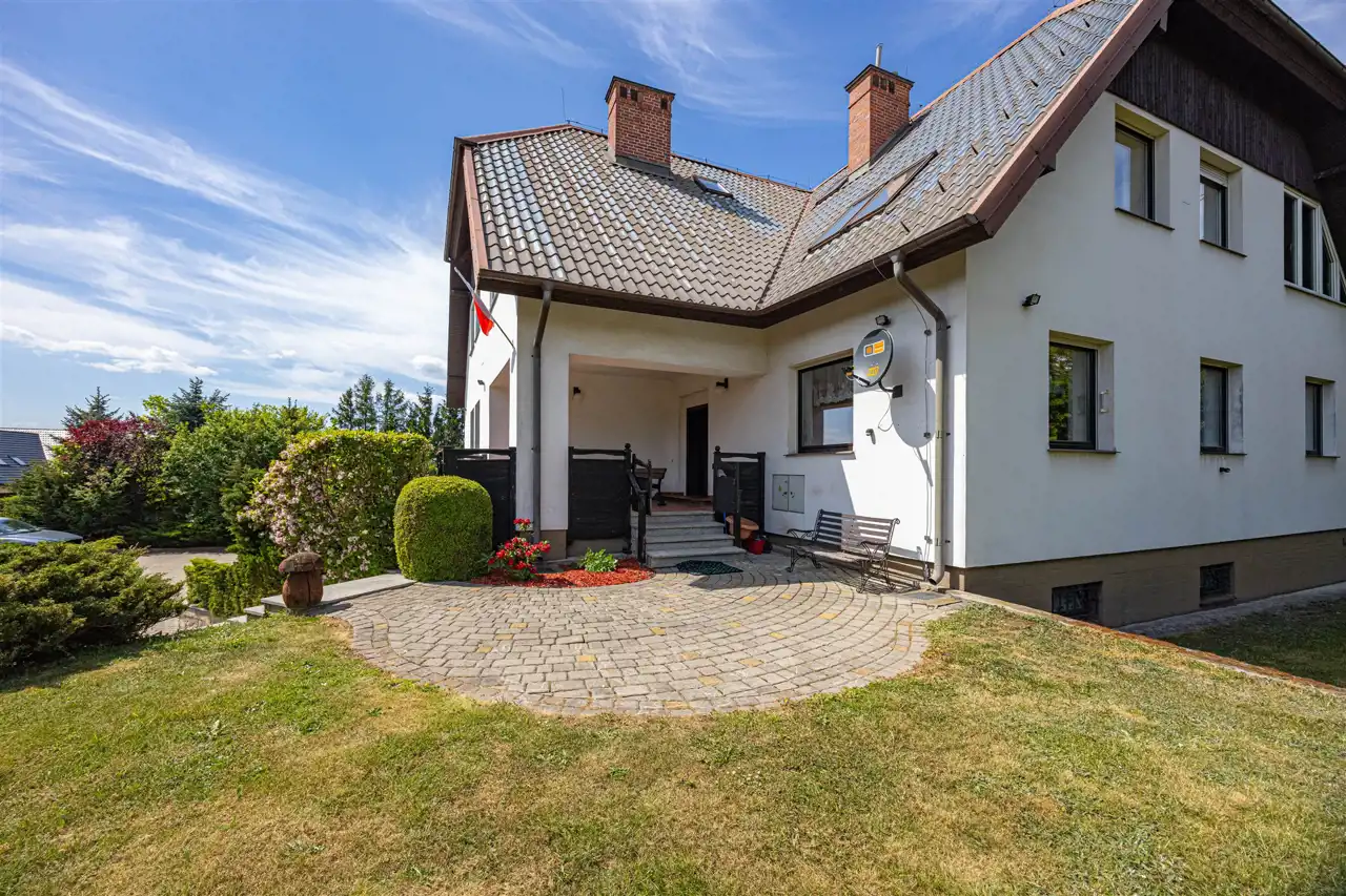 We offer for sale a functional, spacious house with a usable area of 474 m², situated on a landscaped plot with numerous plantings of 5611 m². The plot is located in a quiet and picturesque area with views of the mountain ranges and green areas. The property was built in 1999, continuously modernized and refreshed. The layout of the house and the applied architectural solutions make the property an ideal product for a multi-generational family or for investment (e.g., rental rooms). This property is for demanding clients who will find everything they need to create an oasis of peace.