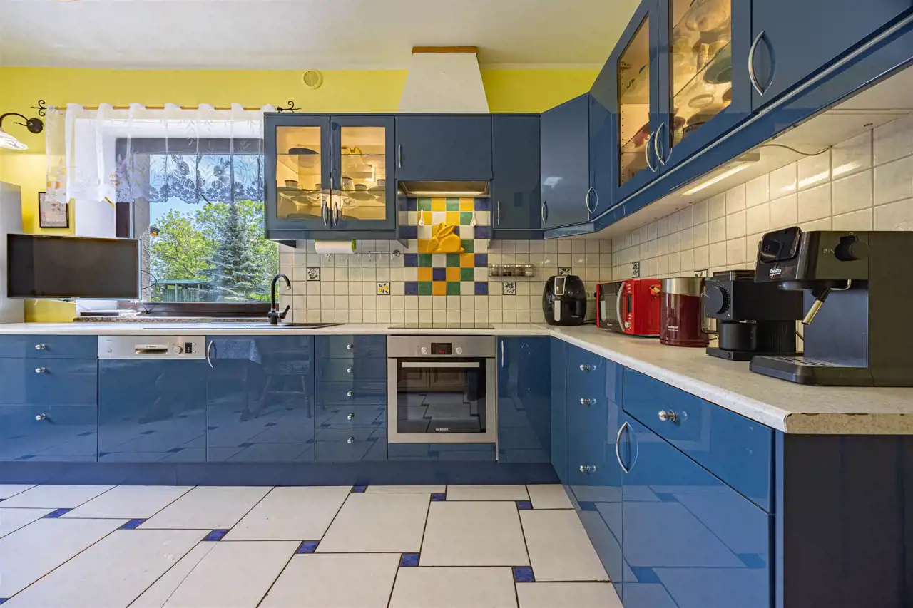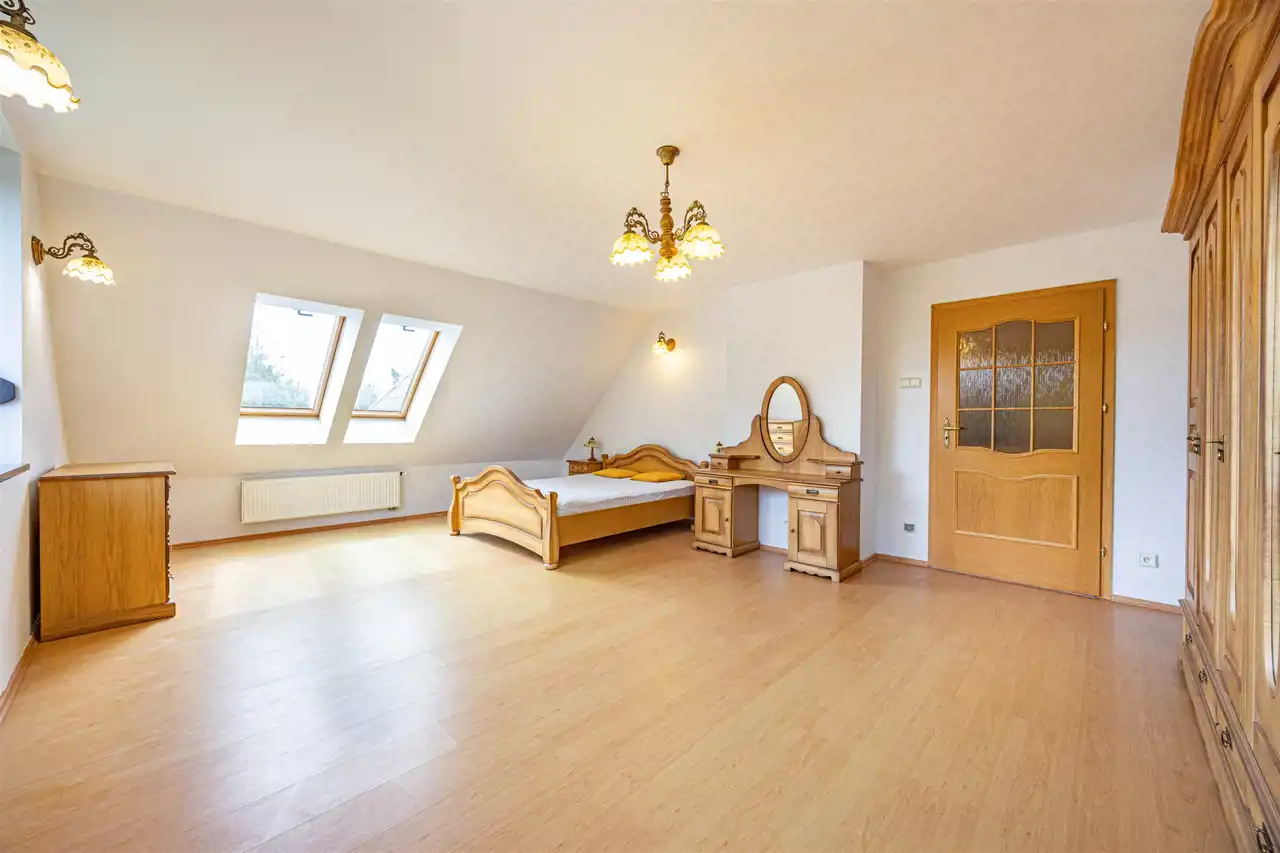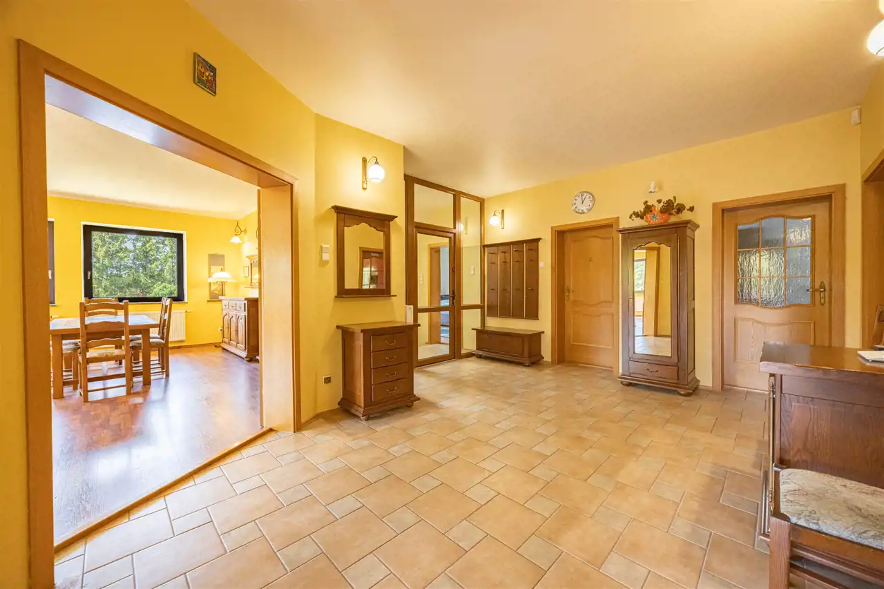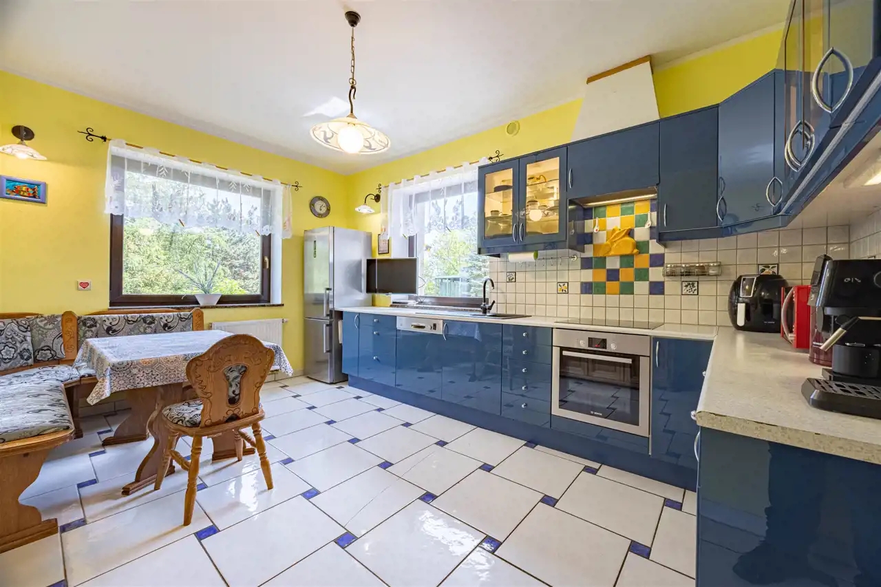 We offer for sale a functional, spacious house with a usable area of 474 m², situated on a landscaped plot with numerous plantings of 5611 m². The plot is located in a quiet and picturesque area with views of the mountain ranges and green areas. The property was built in 1999, continuously modernized and refreshed. The layout of the house and the applied architectural solutions make the property an ideal product for a multi-generational family or for investment (e.g., rental rooms). This property is for demanding clients who will find everything they need to create an oasis of peace.