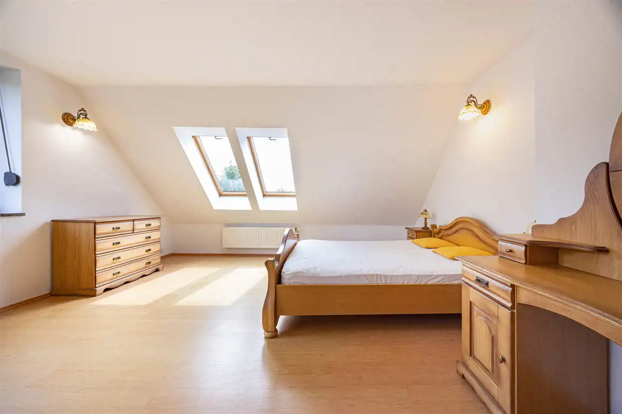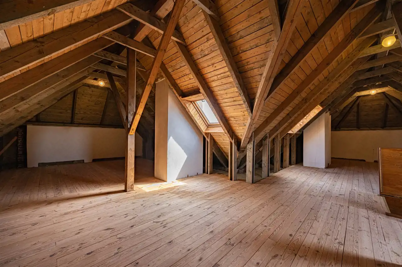 - Strych - pokryty sosnową deską z możliwością zagospodarowania na dodatkową powierzchnię ( ponad 100m2)