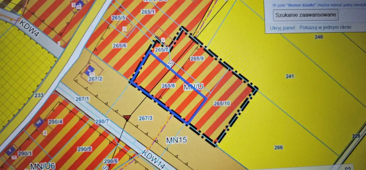 Działka o pow. 1577 m2 oznaczona jest symbolem MN/U i przeznaczona w miejscowym planie zagospodarowania pod zabudowę mieszkaniową jednorodzinną oraz zabudowę usługową, przeznaczenie uzupełniające - zabudowa zagrodowa.