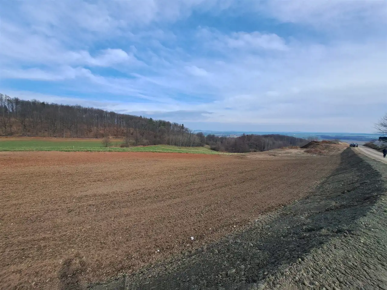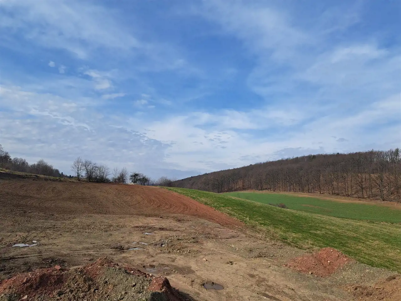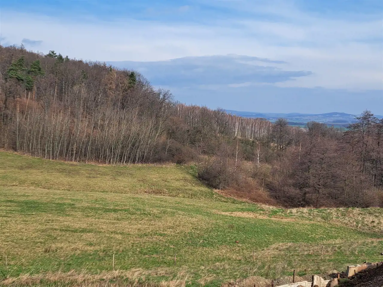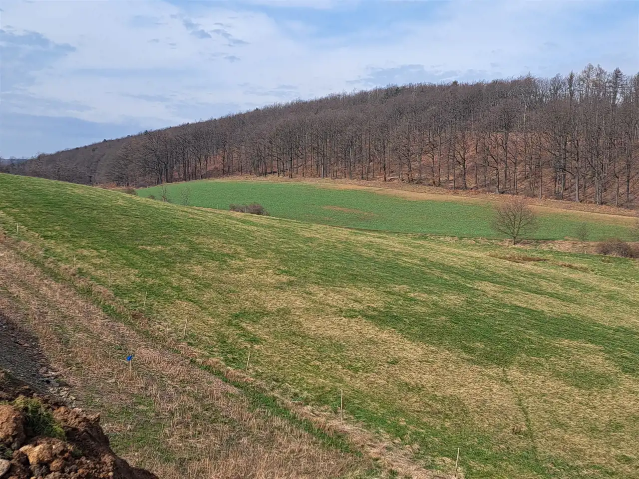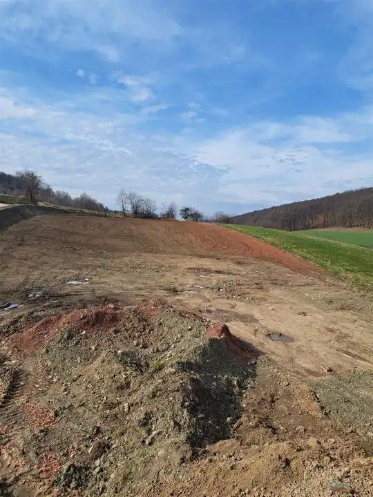Działka lekko nachylona o kształcie prostokąta zlokalizowane w spokojnym miejscu w pobliżu lasu i pól.
