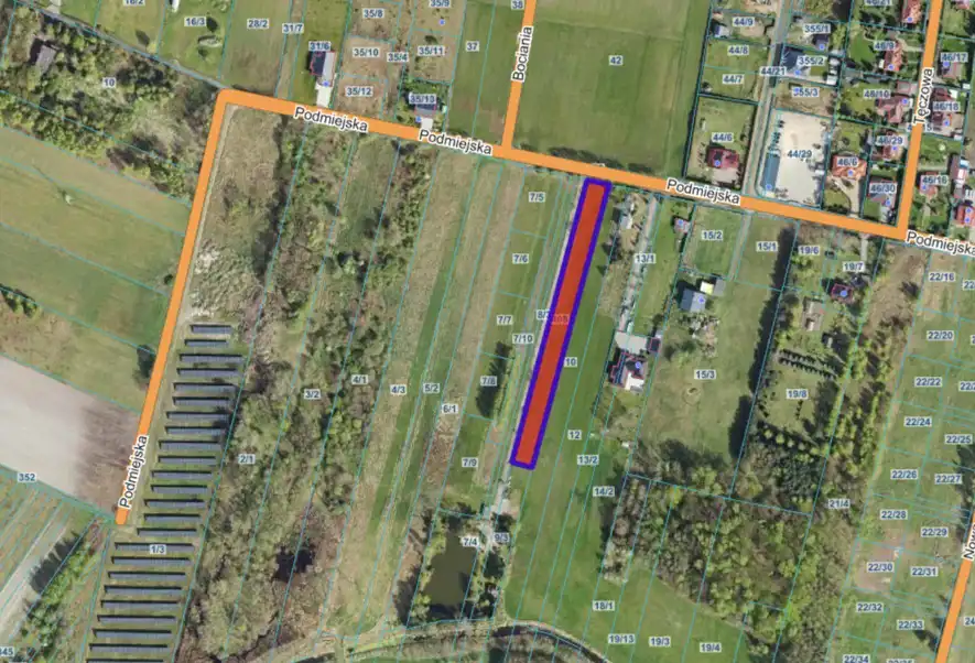 Przedmiotowa nieruchomość położona jest w obrębie ewidencyjnym: 0002 Chechło Pierwsze, jednostka ewidencyjna 100804_2 Dobroń, powiat pabianicki, województwo łódzkie, Nieruchomość stanowi działka ewidencyjna nr 408, powierzchnia nieruchomości wynosi 0,31 ha. Położenie działki: Chechło I. Użytek: grunty orne. Klasa i kontur klasyfikacyjny: RIVa (0,31 ha). Działka usytuowana jest prostopadle do ulicy Podmiejskiej tj. do drogi przy której jest położona. Działka nr 408 jest działką stanowiącą użytek rolny. Działka jest nieogrodzona. Działka posiada kształt wydłużonego prostokąta. Wymiary działki to szerokość ok. 16 m i długość ok. 200 m. Teren działki płaski. Południowo-wschodni narożnik działki przecina napowietrzna linia średniego napięcia. Działka posiada dostęp do drogi publicznej (ulica Podmiejska), brak jest zjazdu z ulicy Podmiejskiej na nieruchomość. Działka nie posiada żadnego uzbrojenia w urządzenia infrastruktury technicznej. Dla terenu na którym położona jest przedmiotowa nieruchomość, brak jest miejscowego planu zagospodarowania przestrzennego. W przypadku planowania inwestycji polegającej na zabudowie lub zmianie sposobu użytkowania nieruchomości określenie sposobów zagospodarowania i warunków zabudowy ustala się w drodze decyzji o warunkach zabudowy. Brak informacji o wydaniu warunków zabudowy dla przedmiotowej nieruchomości. Wg Studium Uwarunkowań i Kierunków Zagospodarowania Przestrzennego Gminy Dobroń Zatwierdzonego Uchwałą Nr XV/110/2016 Rada Gminy w Dobroniu z dnia 11 lutego 2016 r., przedmiotowa nieruchomość położona jest na terenie pasa przydrogowego o szerokości ok. 100 m ulicy Podmiejskiej stanowiącego teren zabudowy mieszkaniowej jednorodzinnej. Według Miejscowego Planu Zagospodarowania Przestrzennego nieruchomość położona jest na terenach zabudowy mieszkaniowej jednorodzinnej z przeznaczeniem podstawowym - zabudowa mieszkaniowa jednorodzinna, jako przeznaczenie uzupełniające - usługi.