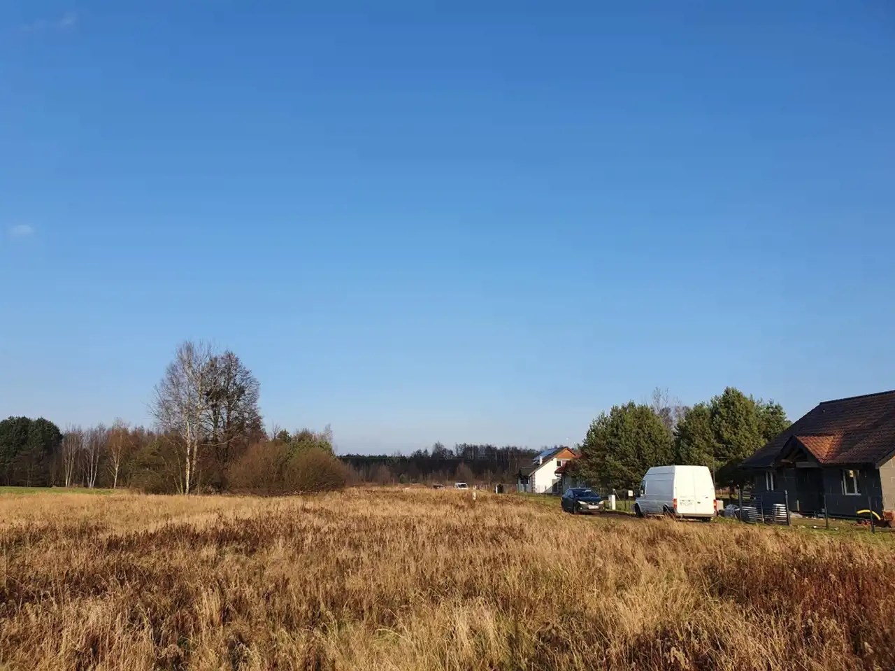 Widok z działki na tereny zielone, doskonała lokalizacja na wycieczki piesze lub rowerowe.