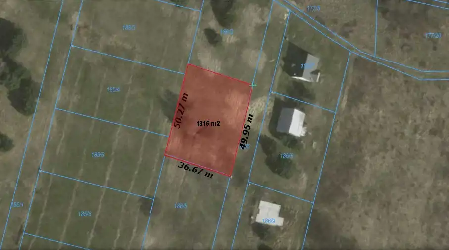Działka (kształt prostokąt) o następujących parametrach: 186/4 - 0,1816 ha