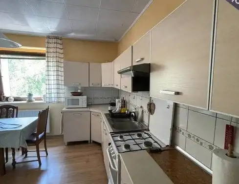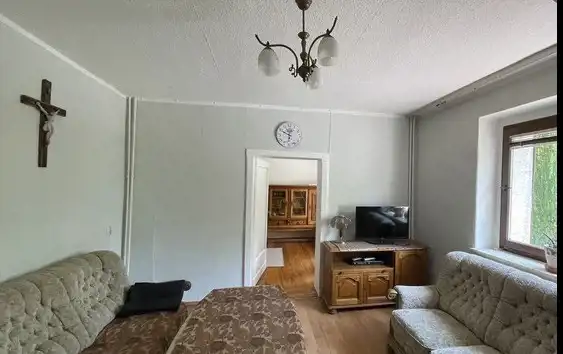 Dom jest w dobrym stanie i można po odświeżeniu zamieszkać. Osoby wymagające będą chgciały przeprowadzić modernizację.