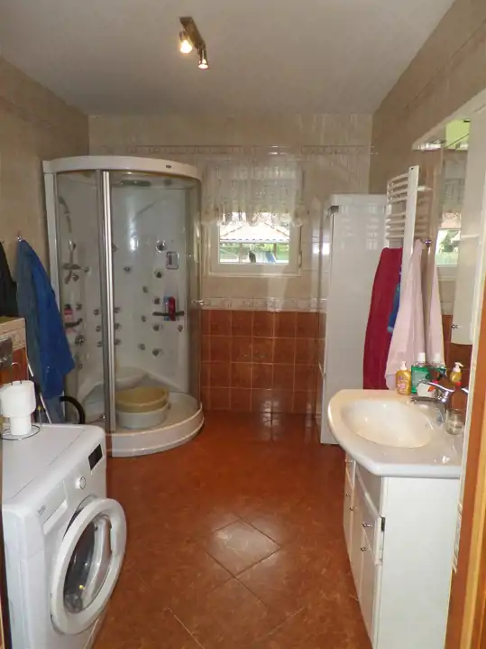 Część mieszkalna składa się z dwóch pokoi / sypialni, przestronnego salonu z aneksem kuchennym w zabudowie oraz kominka, łazienki z kabiną prysznicową i WC, przedpokoju, korytarza oraz kotłowni. Ogrzewanie ekogroszek oraz solar.