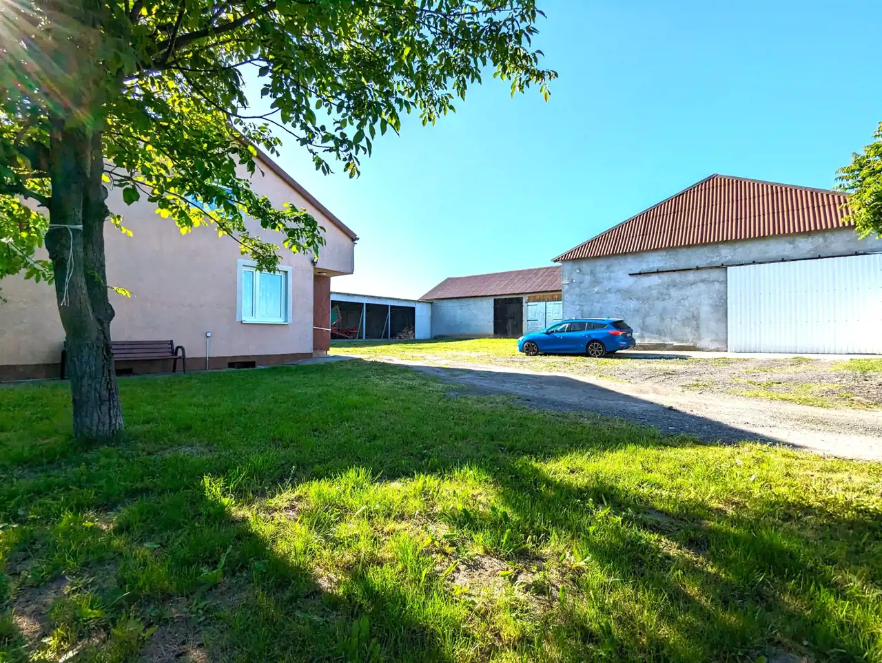 Ewentualnie do nabycia opisane wyżej zabudowania na większej działce około 1,411 ha, w kształcie trapezu o wymiarach 81 x 153 x 100 x 160 m, w cenie 720 000 zł, lub zabudowania na działce 5,08 ha (o długości 345 m wzdłuż drogi wojewódzkiej), w cenie 1 087 000 zł.