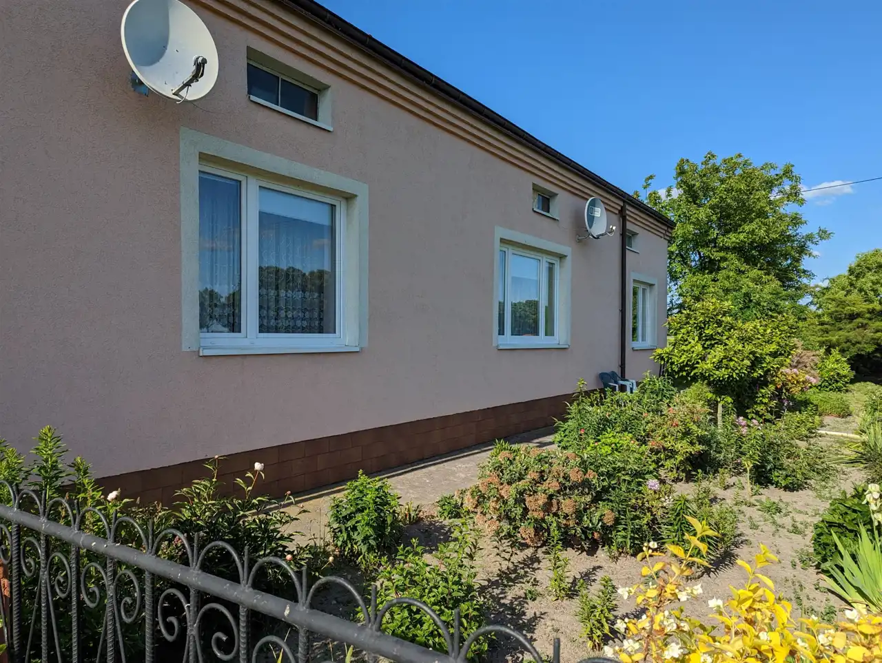 - budynek mieszkalny parterowy o powierzchni 107 mkw - do zamieszkania lub do wykorzystania jako budynek biurowy, 4-pokojowy, z wysokim poddaszem do adaptacji, z niedużą piwnicą z kotłownią, wybudowany w 1970 r. XX wieku z czerwonej cegły, rozbudowany i zmodernizowany w końcu lat 90-tych, od północy i zachodu ocieplony styropianem, strych ocieplony wełną mineralną, z CO węglowym, wykończony – w pokojach na podłodze starannie położone, solidne parkiety dębowe i jesionowe, na ścianach i sufitach gładź, okna PCW, w łazience glazura, terakota, podwieszony sufit, w kuchni również płytki, ładna zabudowa meblowa, w przedpokoju boazeria, wszystko zadbane, czyste.