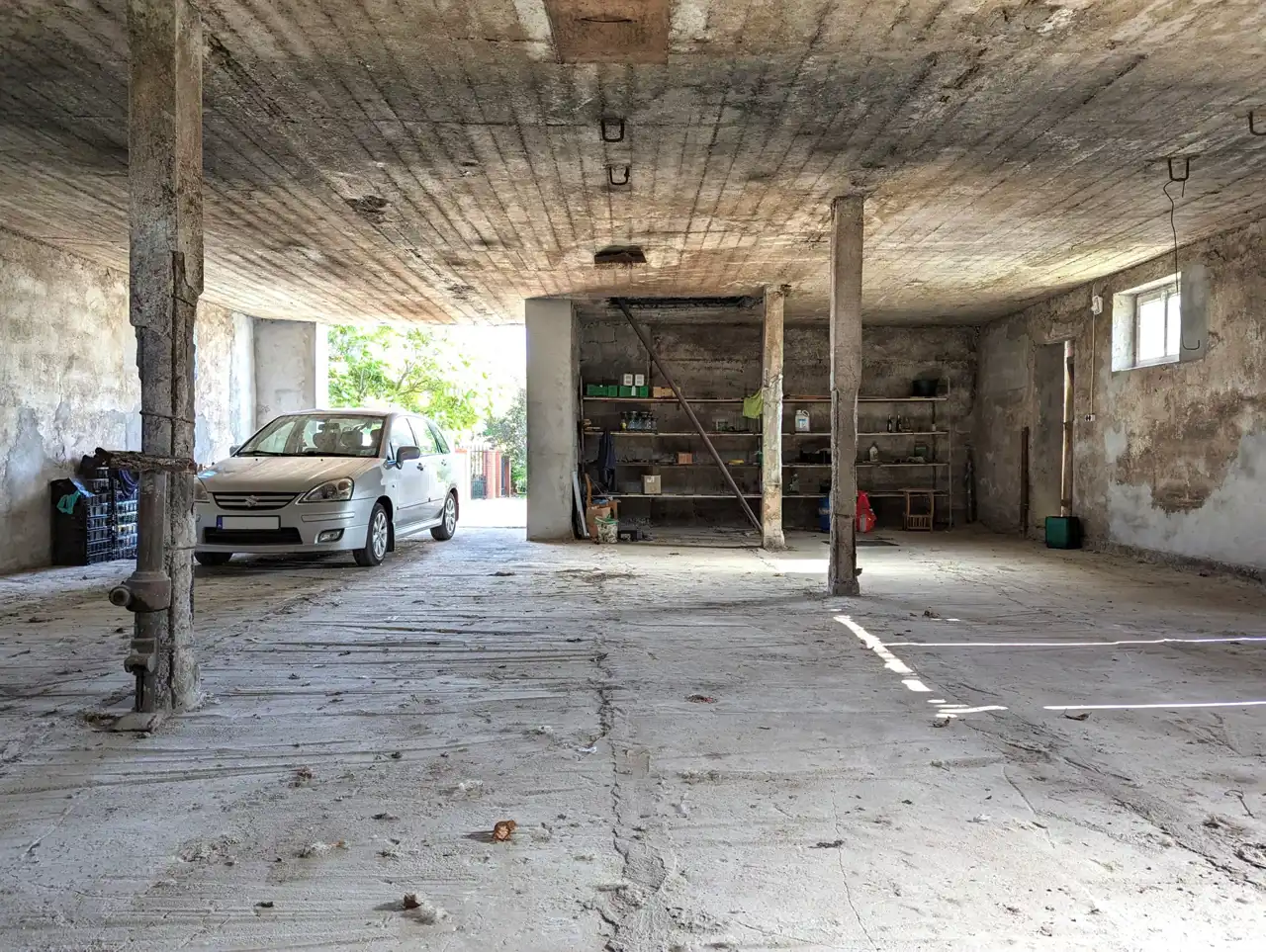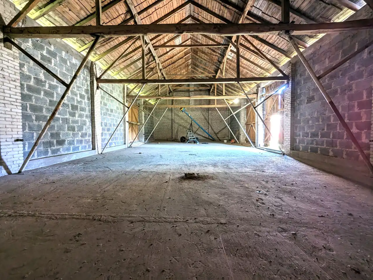 - budynek gospodarczy murowany, z pustaków, o powierzchni 136,95mkw ( 10,20 m x 13,53 m), o wysokości 2,87 m, z wjazdem o szerokości 3,16 m i wysokości 2,85 m, z posadzką betonową, stropem betonowym, ze strychem nad całością