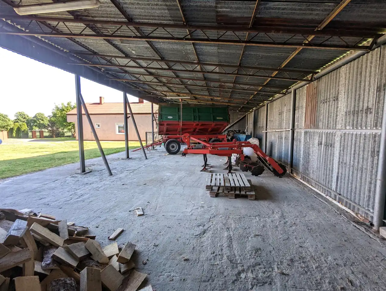 Do wszystkich budynków doprowadzona energia elektryczna, do budynku mieszkalnego również woda z sieci, odpływ do szamba, budynki ulokowane na planie prostokąta, z przestronnym podwórzem, co pozwala na swobodny dojazd do nich, nawet dużymi samochodami ciężarowymi.