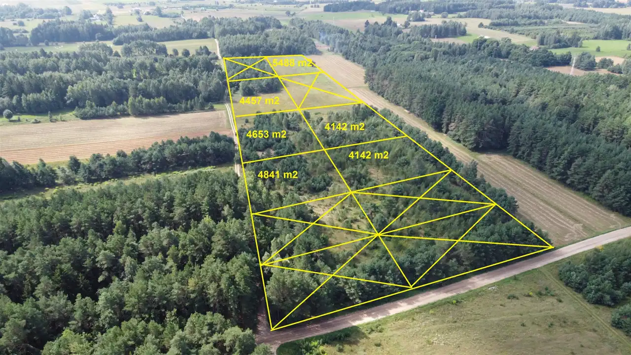 Dostępne powierzchnie działek ze świeżego podziału rozpoczynają się od 4142 m2.