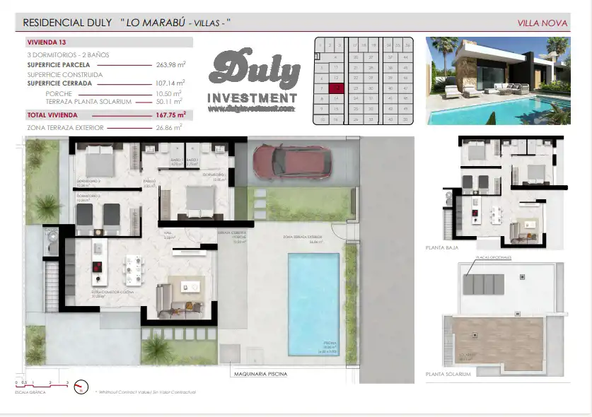 - Nova i Juliet to parterowe wille z opcjonalną piwnicą, prywatnym solarium na dachu oraz przestronnym ogrodem, w którym znajduje się basen.