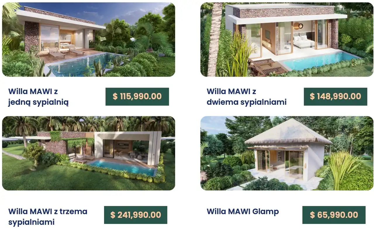 Cena willi podzielona jest na trzy części: willa z działką, wyposażenie oraz basen. Dzięki temu każdy może dostosować swój raj do własnych upodobań.
