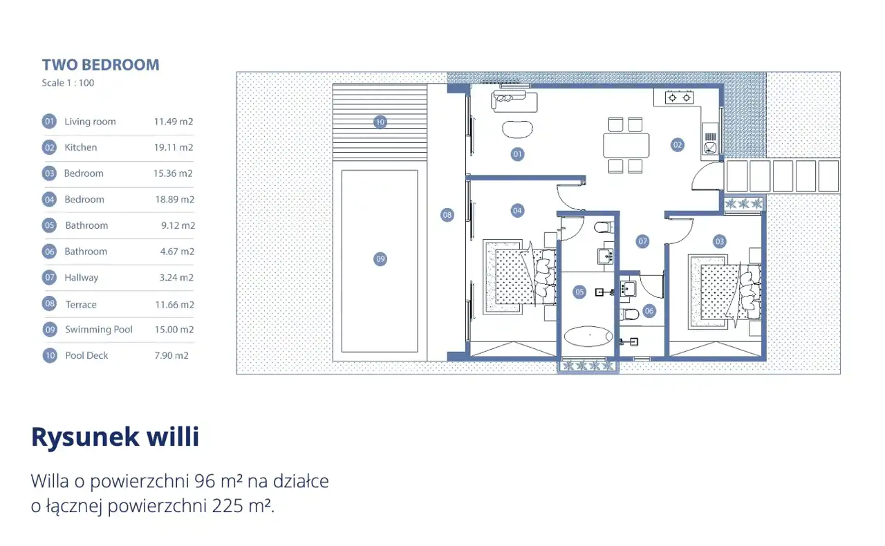 - Charakterystyka mieszkania 96 m2, 2 pokoje